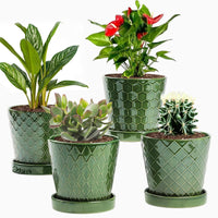 Efispss Flower Planter -5 Inch Ceramic Plant Pots With Drainage Hole And Ceramic Tray - Gardening Home Desktop Office Windowsill