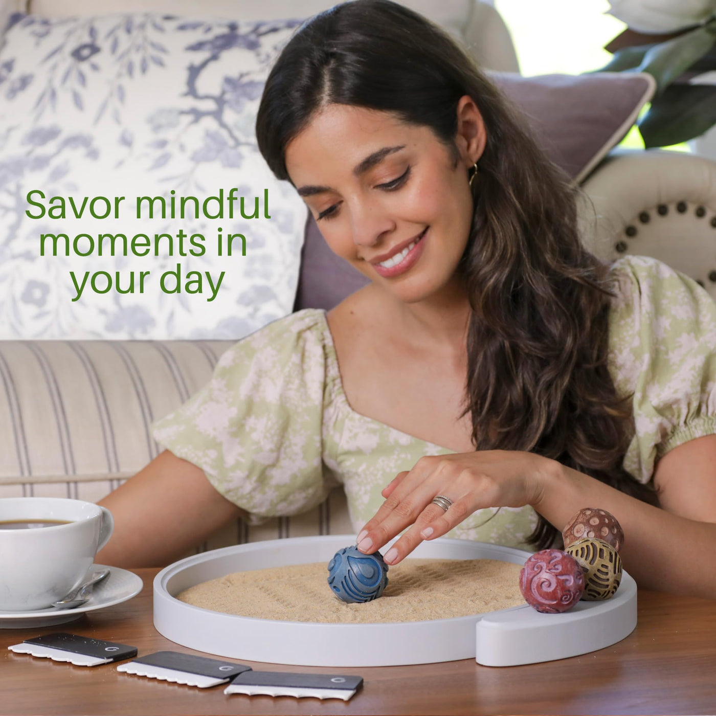 Delight Your Senses Savor Mindful Moments In Your Day. Roll The Sand Spheres To Feel The Varied Textures Against Your Fingers And Watch Distinct Patterns Unfold! This Hand-Crafted Zen Garden For Desks Is Designed For Tactile And Visual Play Soothe Your Mind The Simple Act Of Rolling The Zen Spheres In The Sand Delivers A Truly Calming Experience. Use It For Meditation Or Stress Relief And Add Some Peace And Mindfulness To Your Day. Discover The Meaning Behind Each Sphere In Your Zen Garden Kit: Earth, Breath Of Wind, Still Water, And Voice Let Your Creativity Bloom Create Straight, Spiral, Wavy, Or Random Patterns On This Zen Garden Kit Using The 4 Hand-Crafted And Hand-Painted Resin Spheres Created From Non-Toxic Materials. The 12'' Circular Tray From Sustainably Harvested Fir Wood, Offers A Playground For Your Imagination! Our Set Includes 3 Uniquely Designed Bamboo Rakes, Inviting You To Express Your Creativity And Embrace Playfulness As You Shape Your Zen Space Elevate Your Decor Bring The Endearing Charm Of Japanese Zen Gardens Into Your Work Or Living Spaces! Create Interesting Patterns Using The Patent-Pending Sand Spheres And Come Up With An Eye-Catching Display. Made With Sustainability In Mind: Eco-Friendly Packaging, Sustainably Sourced Fir Wood, And Recyclable Sand Jar A Gift Of Wellness Bring Joy To A Friend Or Loved One Who'S Constantly Stressed, With This Mini Zen Garden Kit! They'Ll Surely Appreciate The Positivity And Relaxation That Comes With Using It. Ethically Crafted, Environmentally Friendly, And Socially Responsible Products That Make A Positive Impact On You, Your Friends, Your Loved Ones, And The Planet