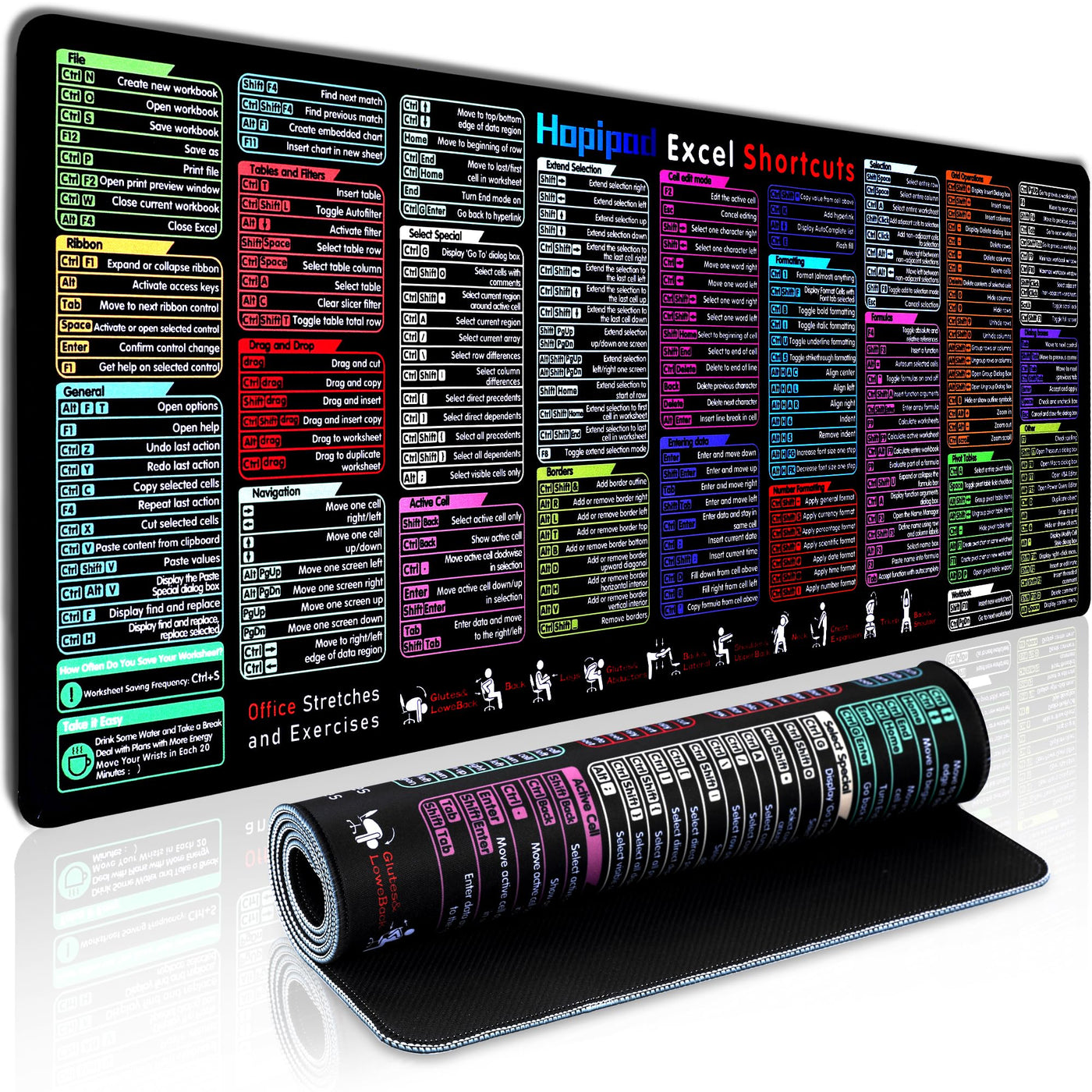 Excel Cheat Sheet Desk Pad With 231 Shortcuts | Xl 31.5 'X11.8 ' Waterproof Mousepad | Non-Slip Office & Gaming Desk Mat | Sti