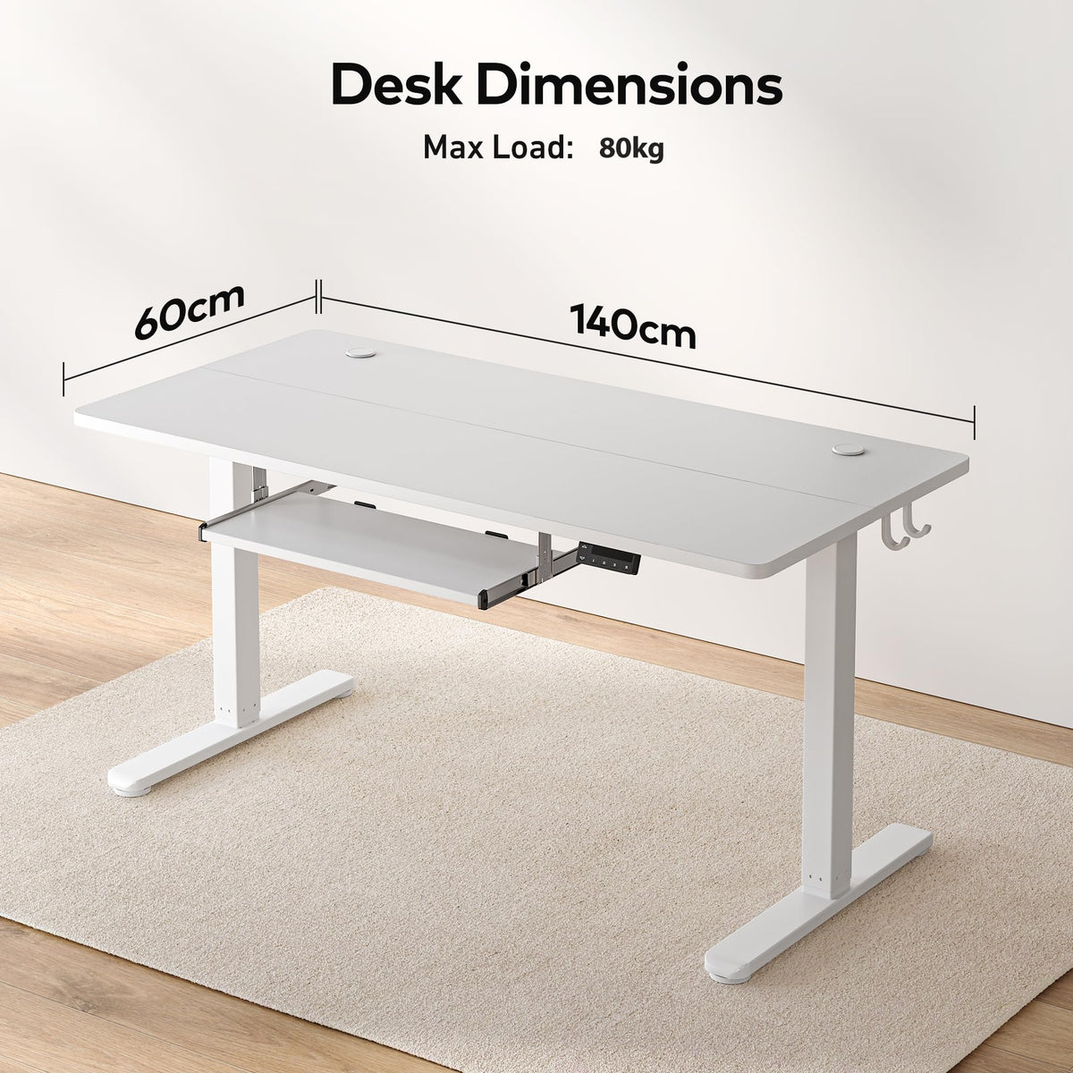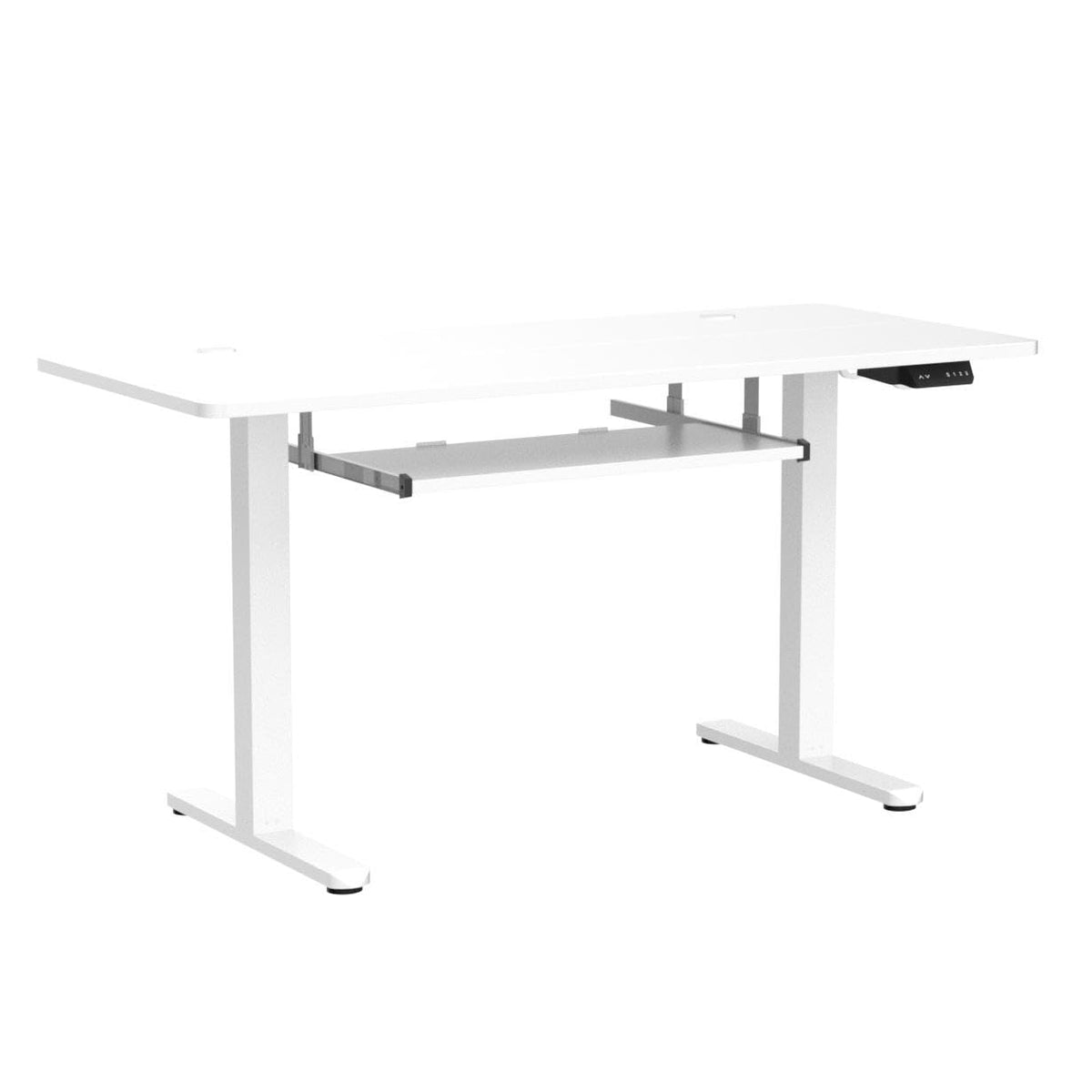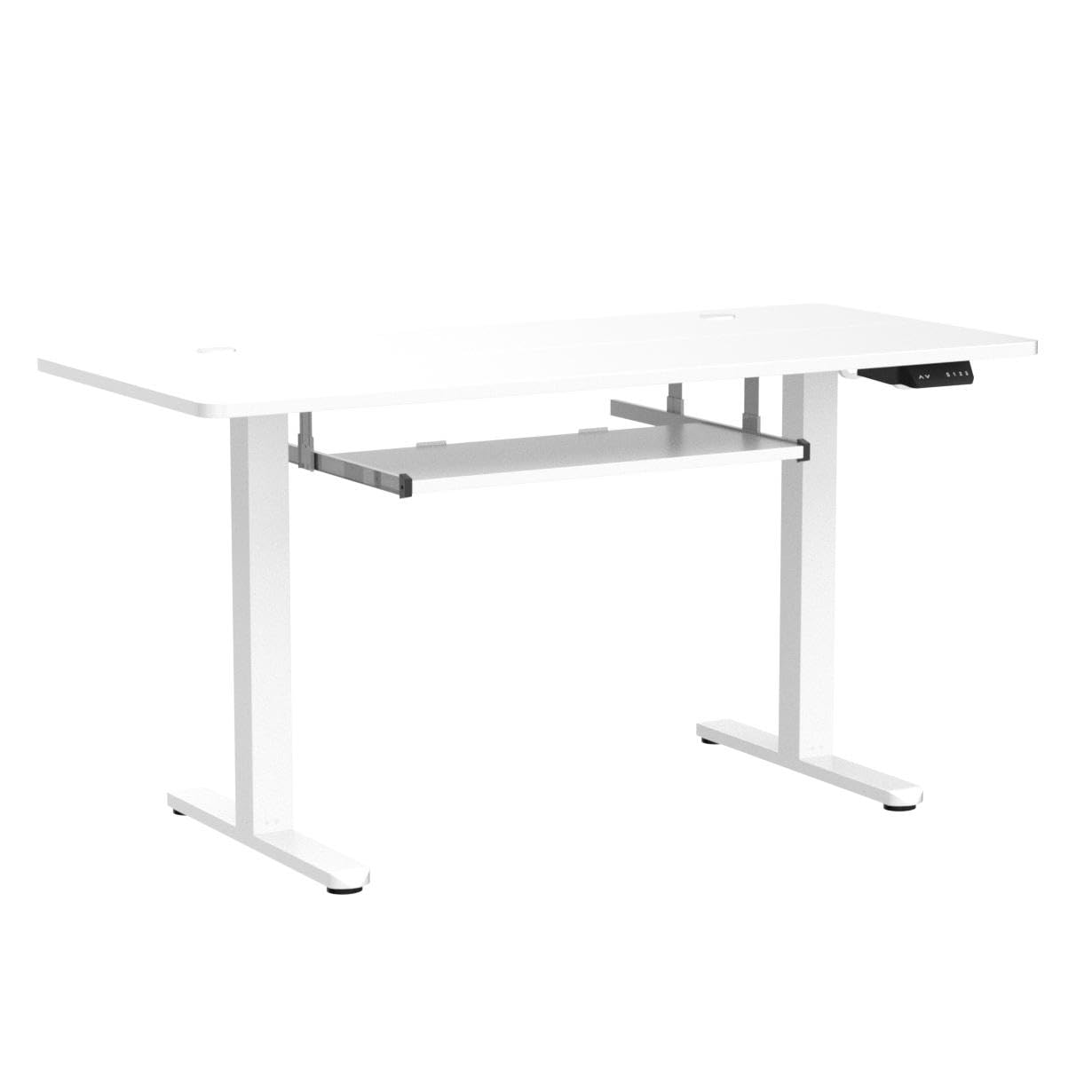 This is a standing desk with a keyboard tray. Firstly, it has a smooth lifting function, which can meet the dual needs of standing and sitting office, and has three memory buttons for adjusting the height of the table with one click. Secondly, the design of the keyboard tray allows people to maintain a 90 degree elbow position during work or gaming, which is more ergonomic.