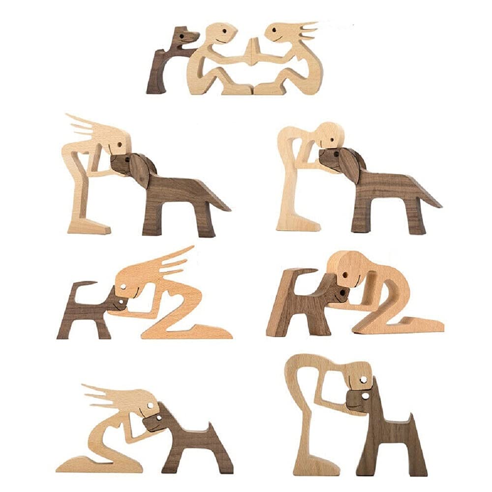 Fhtdw Unique Gift Hand Carved Wood Dog Human Statue Figurine Sculpture Home Office D Cor, Wooden Man Dog Carving Model To Remem