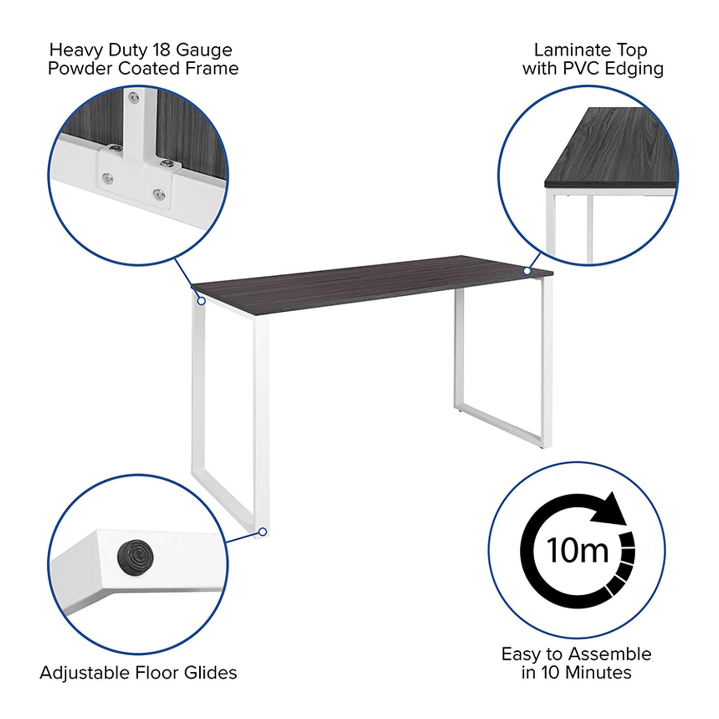 Whether you need a simple style computer desk to furnish your new office suite or are working from home this industrial style office desk offers plenty of tabletop work space, clean lines and an elegant modern look suitable for any professional or home decor. Dependable computer furniture is necessary to navigate your business and team members towards success. The ultra-strong 18 gauge metal frame is powder coated to resist damage and will support up to 250 lbs. of static weight. Adjustable floor glides accommodate uneven flooring to give users a level work surface. No complicated setup gives you full use of your PC computer office table in about 10 minutes without breaking a sweat. Create an office, writing or study space in your loft, living room or bedroom while maintaining an open concept. This open framed office table was built for commercial settings but is well-suited for home usage. With its minimalistic style you can effortlessly convert this work desk into your game table or dining table.