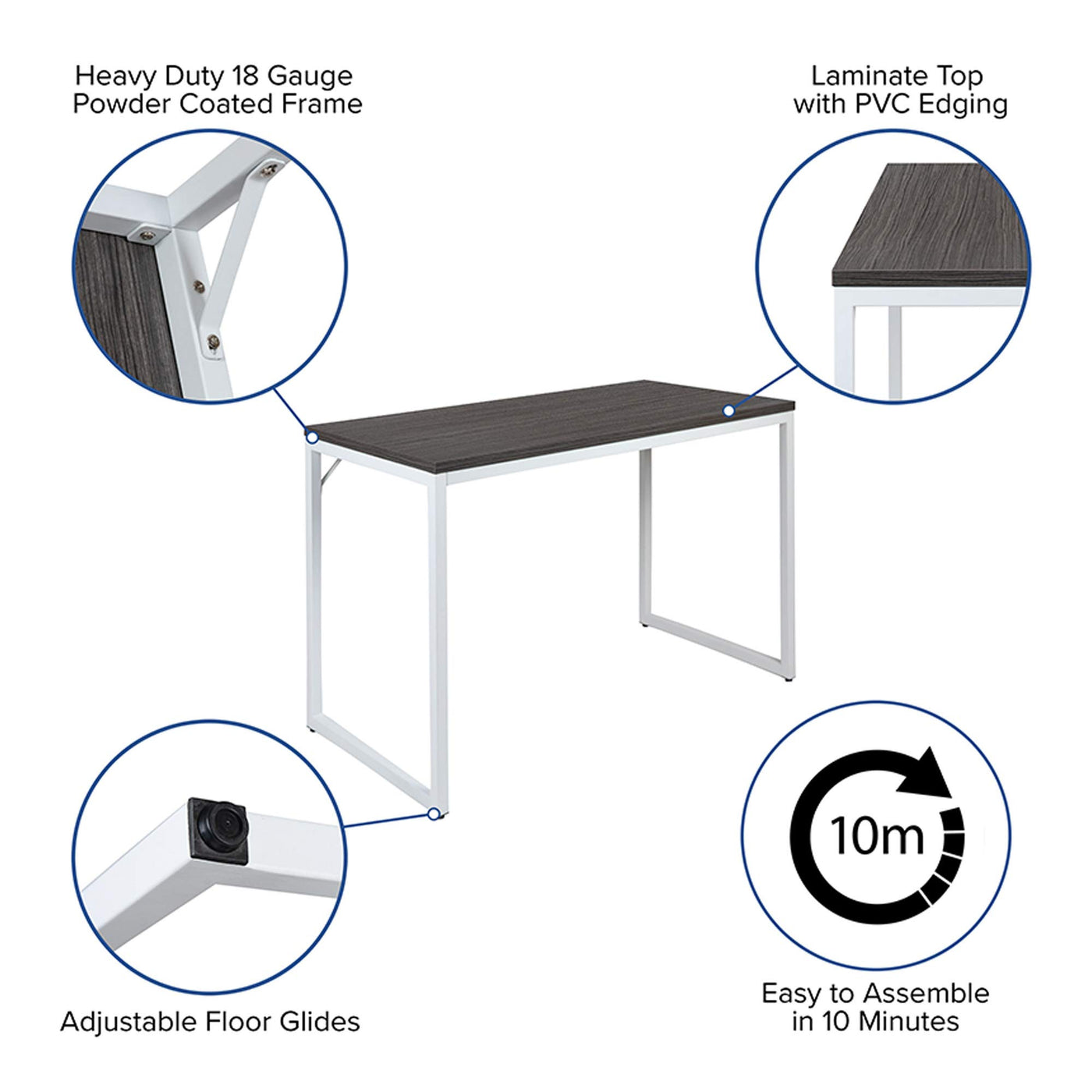 Flash Furniture Kimberly Tiverton Industrial Modern Desk-Rustic Gray/White Commercial Grade Computer Desk-47" Sturdy Home Office Desk-Writing Desk