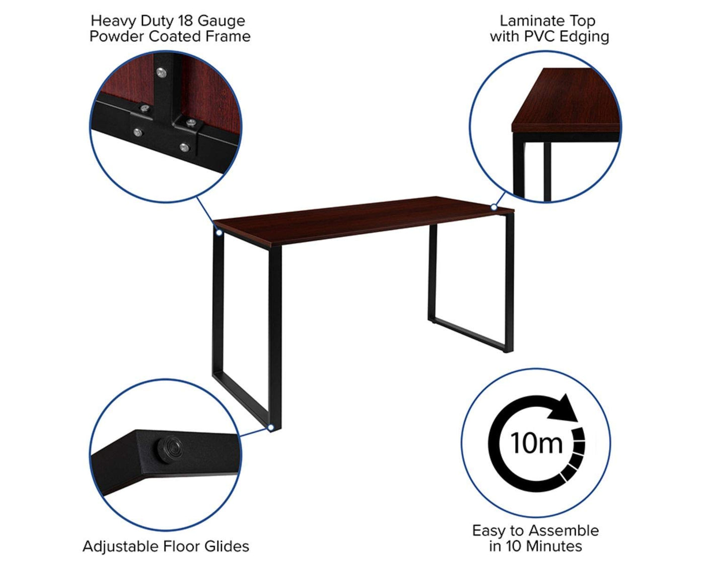 Flash Furniture Modern Commercial Grade Desk Industrial Style Computer Desk Sturdy Home Office Desk - 55' Length (Mahogany)