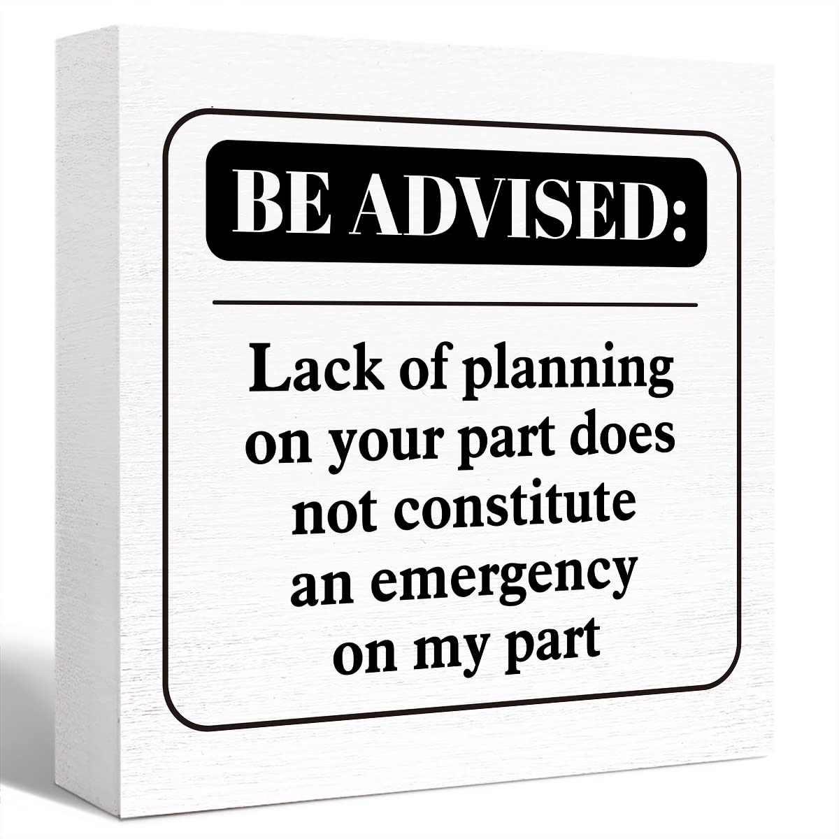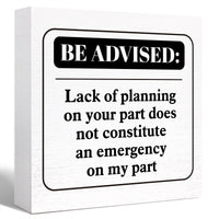 Funny Office Wood Box Sign Be Advised Lack Of Planning On Your Part Doesn'T Constitute An Emergency On My Part Wooden Block Sign