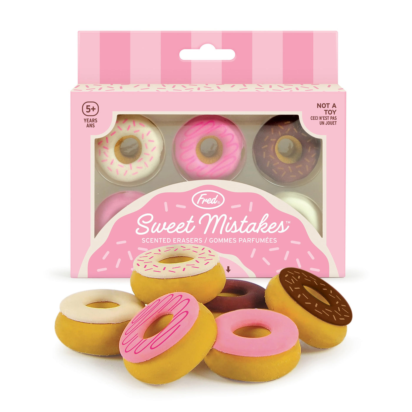 Donut Let Mistakes Ruin Your Day. Treat Yourself Instead. Freds Sweet Mistakes Are Holesome Donut Erasers That Will Fill Your Workspace With A Fresh Vanilla Scent As You Correct Tiny Errors. Each Set Of 6 Is Made Of Bpa-Free Tpu Rubber.