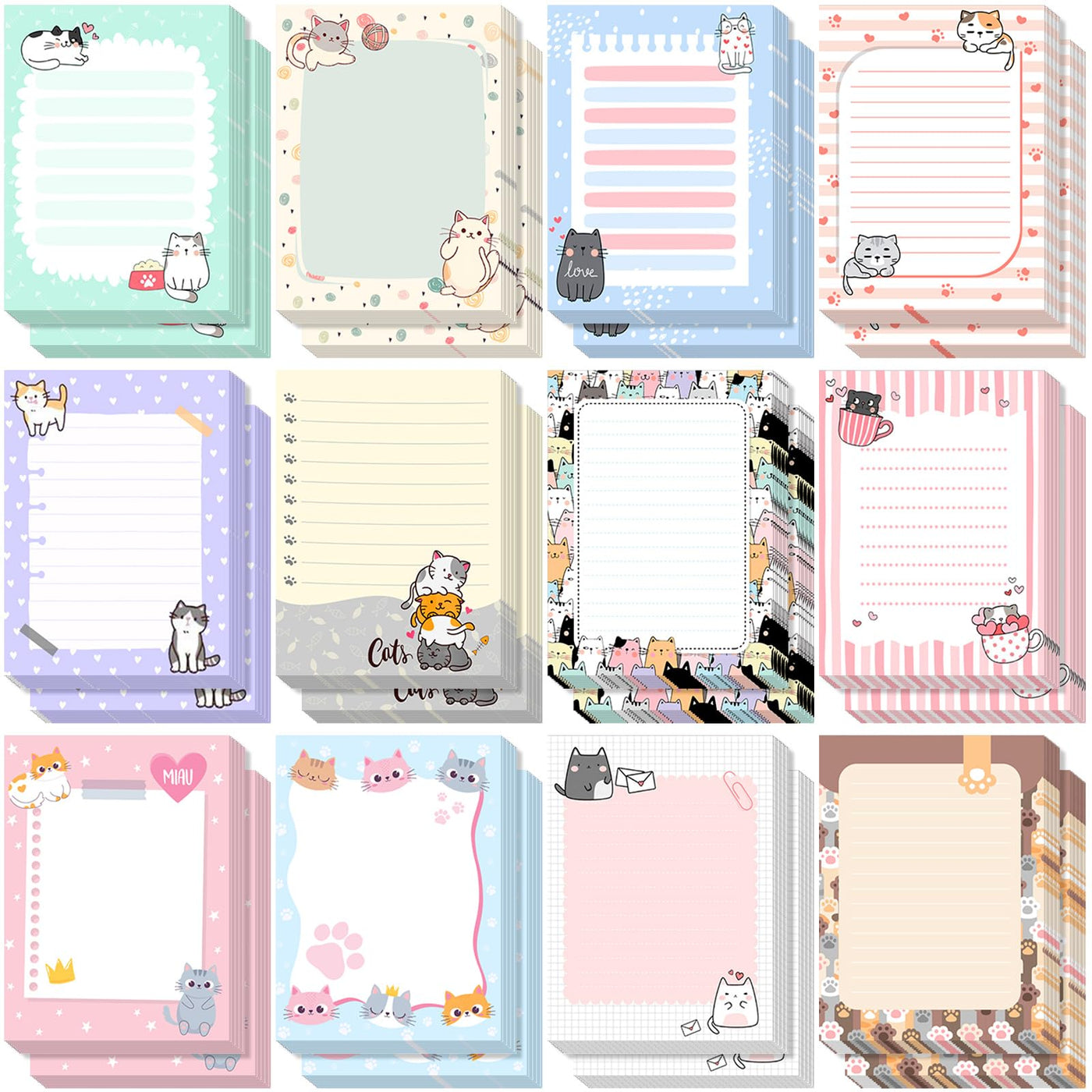 Gilprop 24 Pack Cute Cat Sticky Notes 3x4 Inch Cute Self Stick Notepads Adhesive Cartoon Cat Memo Pad for Women Office Decor Gif