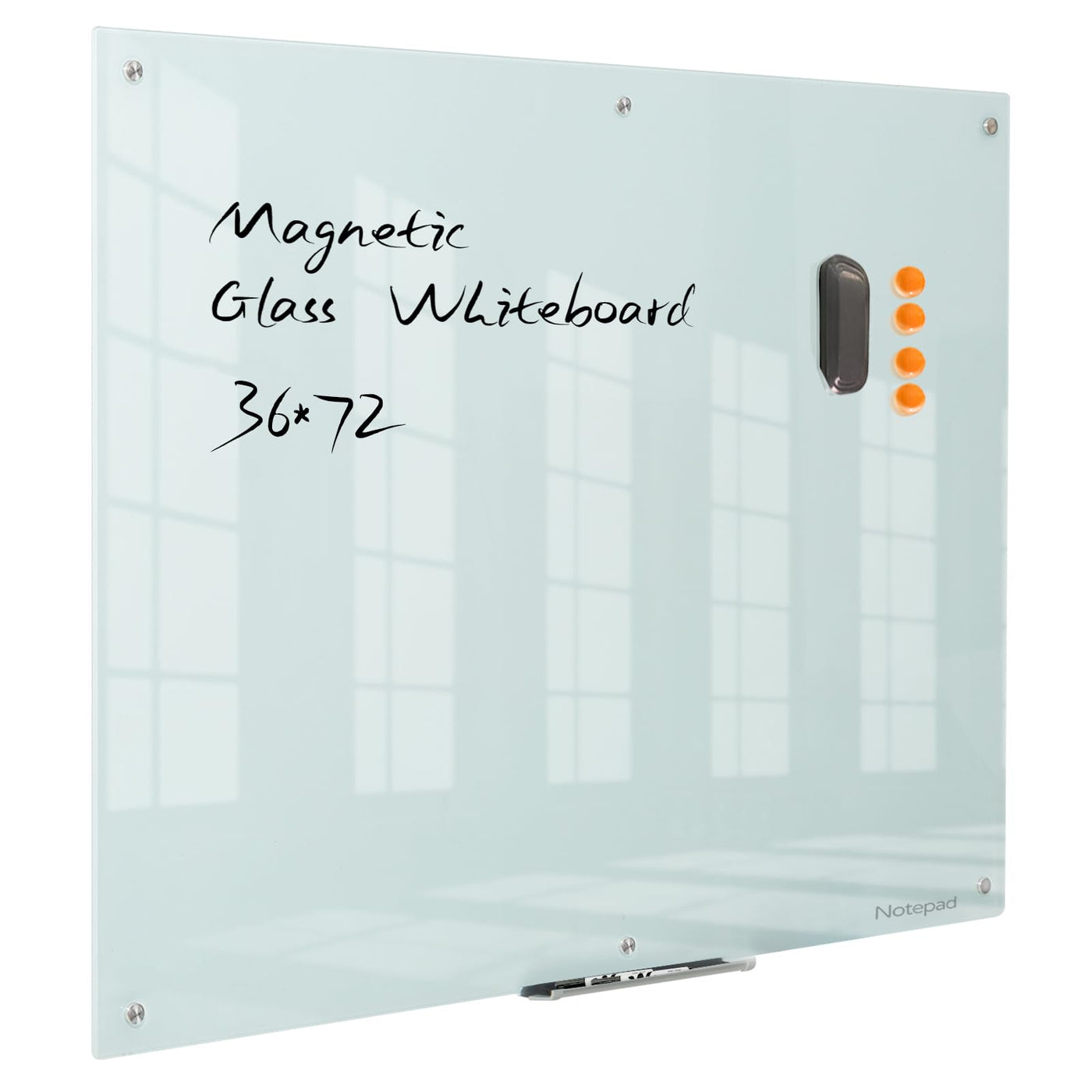 Glass Whiteboard 36 * 72Inches Magnetic Wall Mounted Glass Whiteboard, Large Frameless Glass White Board For Wall Office, Home &