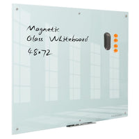 Glass Whiteboard 48 * 72Inches Magnetic Wall Mounted Glass Whiteboard, Large Frameless Glass White Board For Wall Office, Home &
