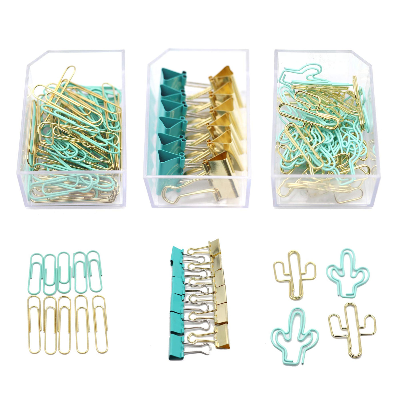 Gold Blue Binder Clips And Paper Clips Set (3-In-1 Boxed), For Office School Supplies Teachers Classroom Daily Use