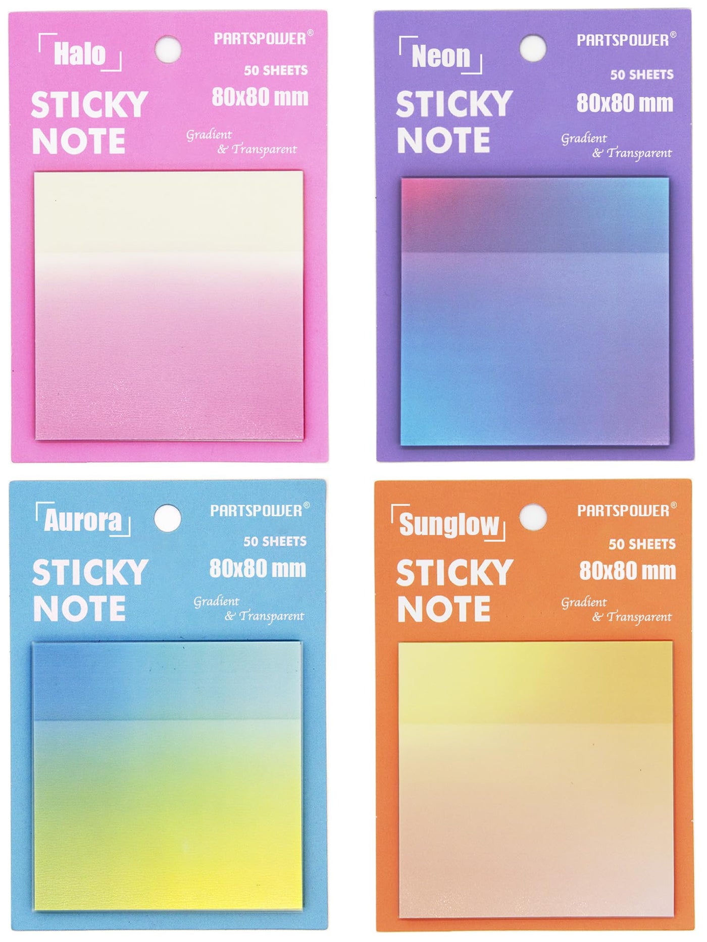 Gradient Transparent Sticky Notes, 8X8 Cm See Through Notes For Annotating Bible Journaling Office Supplies, 50 Sheets/Pad, 4 Pa