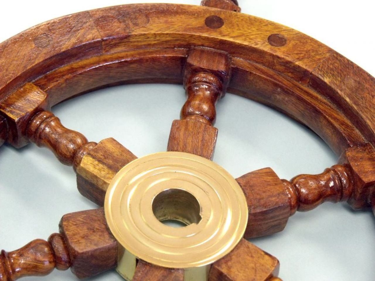 The Hampton Nautical Deluxe Class Wooden Ship'S Wheel Is By Far The Highest Quality Ship Wheel Available. Our Deluxe Class Solid Wood Ship Wheels Have Distinct And Clearly Visable Wood Grain. In Addition, They Are Hand-Sanded With Additional Coats Of Lacquer Which Give This Decorative Ship Wheel A Slight Gloss Which Makes This A Perfect Nautical Decor Accent For Your Home, Boat Or Office. Made From Rare, High Quality Shisham Wood Which Is Hard, Strong And Is Highly Regarded For Its Ability To Resist The Elements. The Decorative Wooden Ship Wheel Has Eight Spokes, Each Skillfully Turned And Assembled With Plugged Screw Heads. The Brass Center Hubs Have Uniform Sizes Holes And Machined Keyways.