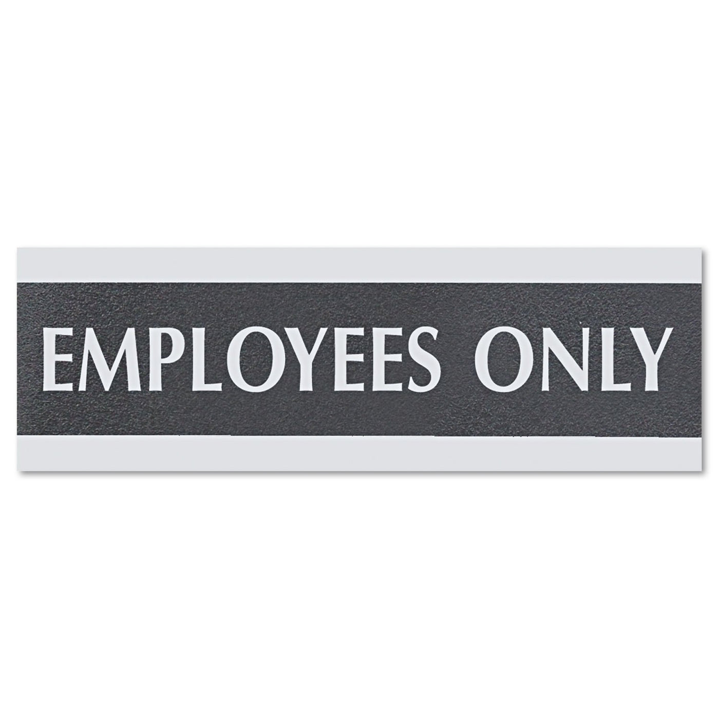 Headline Sign Century Series Office Sign, Employees Only' For Wall Door Or Countertop, 9' X 3', Black And Silver (4760)