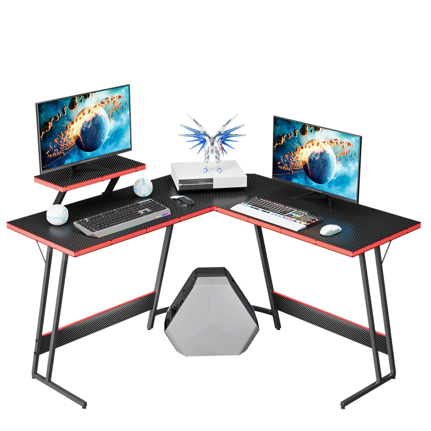 Description: Homall Is Committed To Providing Customers With A Delightful Shopping Experience, So That Customers Can Buy Satisfactory Furniture At Affordable Prices. As A Seller In The Furniture Industry For Many Years, We Are Always Trying Our Best To Improve And Innovate Products That Combine Beauty, Functionality And Durability. At Homall, You Can Purchase The Suitable Furniture To Decorate Your Sweet Home And Make Your Life Full Of Happiness. This Homall L Shaped Gaming Desk Is Made Of Carbon Fiber Board And High Quality Steel Legs. L Shaped Design, Carbon Fiber Surface, Detachable Monitor Stand And Ample Space. Give Your Gaming And Working A Comfortable And Excellent Experience With Homall Gaming Desk. Specification: ?L Shaped Design Provides Ample Space ?Carbon Fiber Surface Ensures Delicate Touch ?Adjustable Monitor Stand Can Be Fixed On Any Side Of The Desk ?Modern And Stylish Look Makes Your Home Or Office More Cool ?Include Instructions, Easy To Assemble Package Contents: - 4 X Tabletops - 2 X Fixing Plates - 2 X Table Stands - 2 X Table Leg Connecting Rods - 2 X Legs On The Table - 1 X Hardware Fitting Bag - 1 X Instructions
