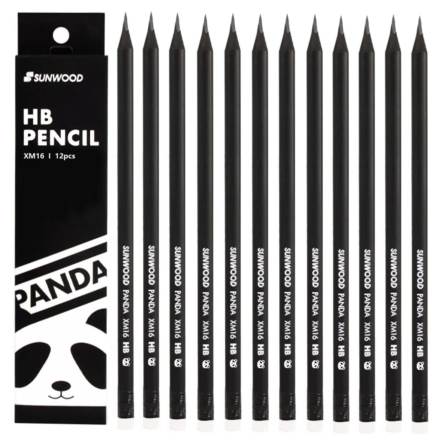 Hysmmxher Panda #2 Hb Black Wood Cased Graphite School Pencils, Pack Of 12, Pre-Sharpened With Latex Free Erasers, Office Suppli