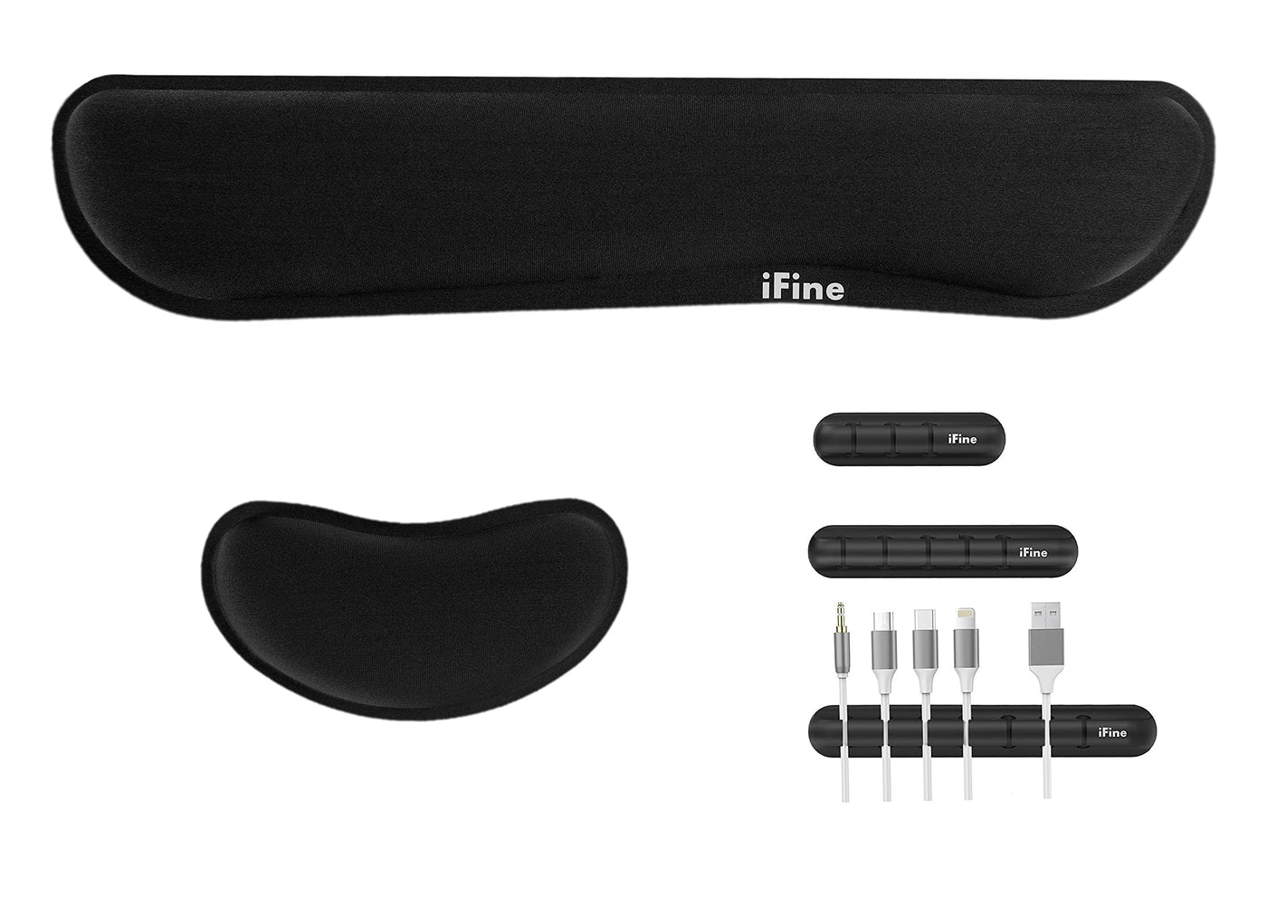 Ifine Gel-Like Memory Foam Keyboard Wrist Rest Pad And Mouse Wrist Cushion Set Provides Good Support To Your Wrist, Maximum Relief Wrist Stress And Tiredness. Prevent Chronic Wrist Pain Such As Carpal Tunnel Syndrome. Superior Support To Reduce Fatigue & Wrist Discomfort. The Lycra Fabric Effectively Avoid Friction Between The Wrist And The Desktop To Prevent Wrist From Any Hurts. It Allows Smooth, Wrist And Hand Movement. Edges Of Our Keyboard Armrest Are Reinforced To Endure Long-Time Use. The Soft Gel-Like Memory Foam Cushion Conforms To Your Wrist For Maximum Support. Wrist Rest Support Height Keeps Your Hand Straight For More Comfortability. Keeps Your Wrist In A Neutral Position For Ergonomic Comfort. Wrist Support Tool Combo Fit Most Computers, Notebooks, Mouse, Improves Hand And Wrist Posture. Perfect Wrist & Hand Fatigue Reliever For Workers, Gamers, Writers, Editors Who Are Engaged At Long Typing Work. A Truly Perfect Gift For Lovedones We Care. Package Inclusions: *1Pc Keyboard Wrist Rest Pad *1Pc Mouse Wrist Cushion *1Pack Of 3 Black Cable Organizer *7-Slot *5-Slot *3-Slot