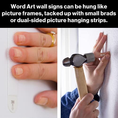 Q: How can I hang the Word Art wall sign?A: You can hang the Word Art wall sign using small brads, or for easier repositioning, you can use dual-sided picture hanging strips, allowing you to move it without damaging your wall.