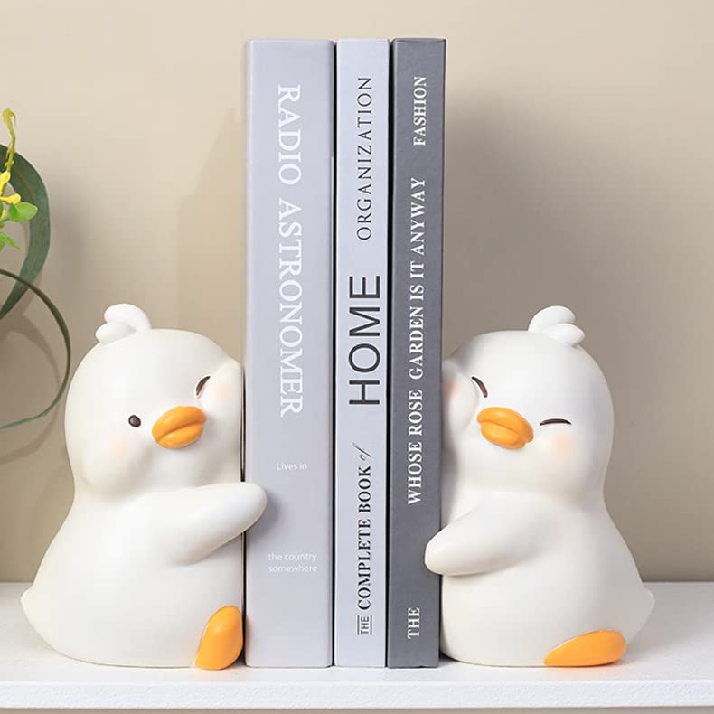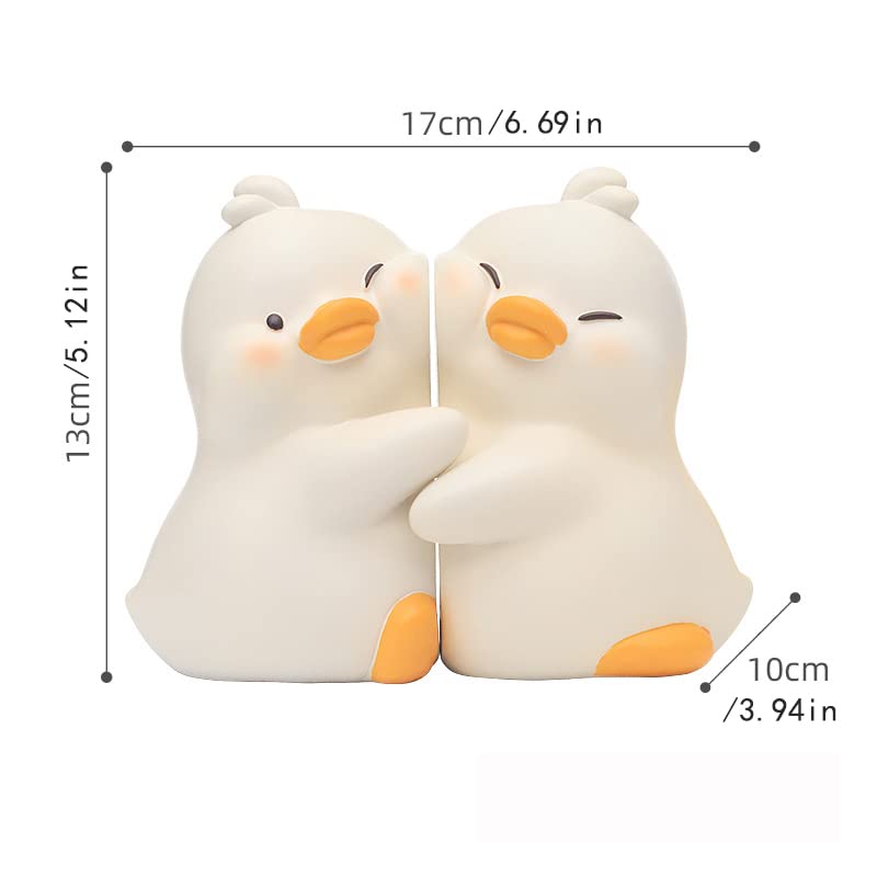 Jarpsiry Cute Hug Ducks Decorative Bookends, Unique Book Ends To Hold Books Creative Resin Book Holder Stopper For Home Office D