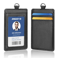 Jineasy Id Leather Id Badge Holder Vertical Lanyard Id Card Holder Black Badge Protector Case For Work Office Name Badges Keycar