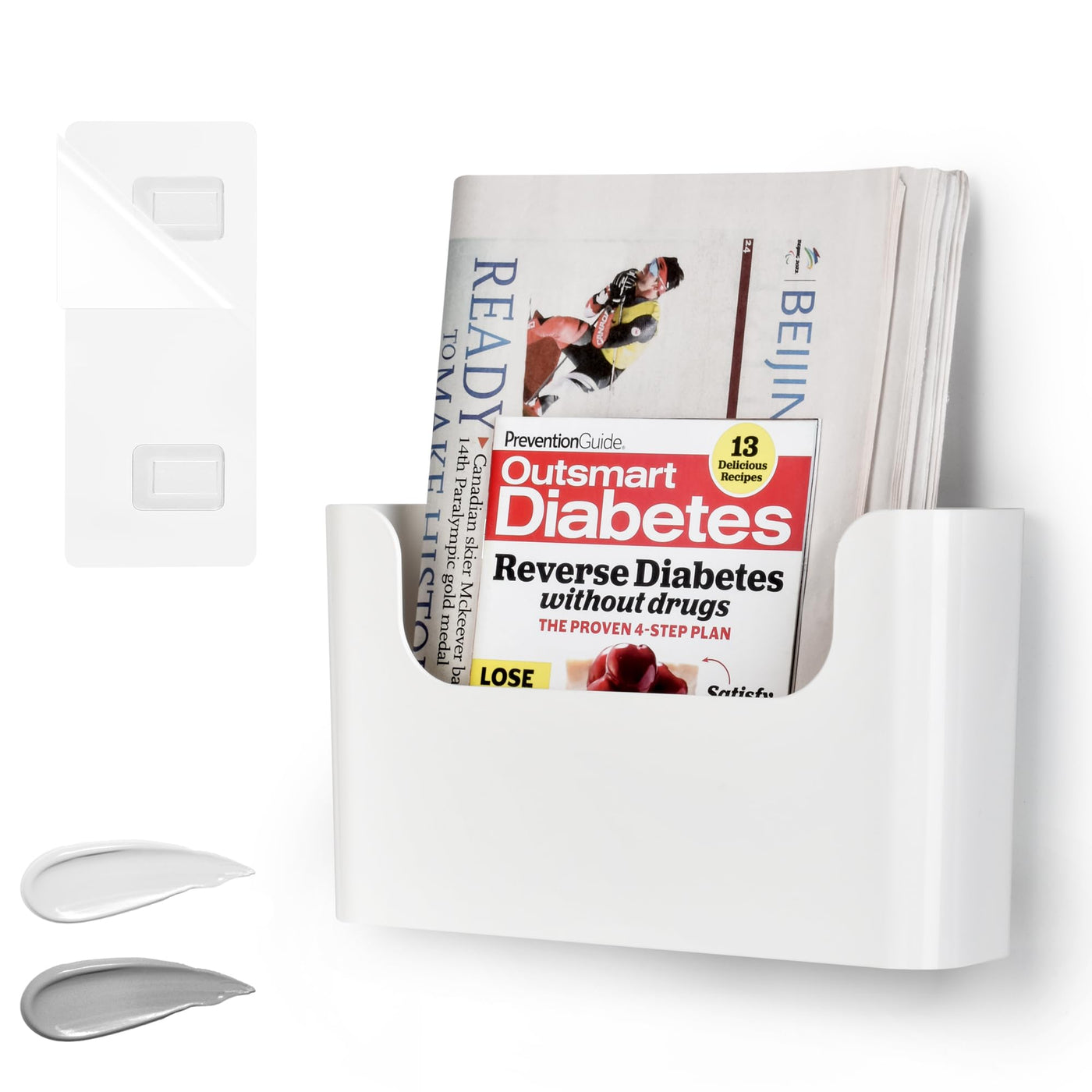 No Drilling File Holder Wall Mails Magazines Organizer Adhesive Door Mount, Single Pocket, Off-White