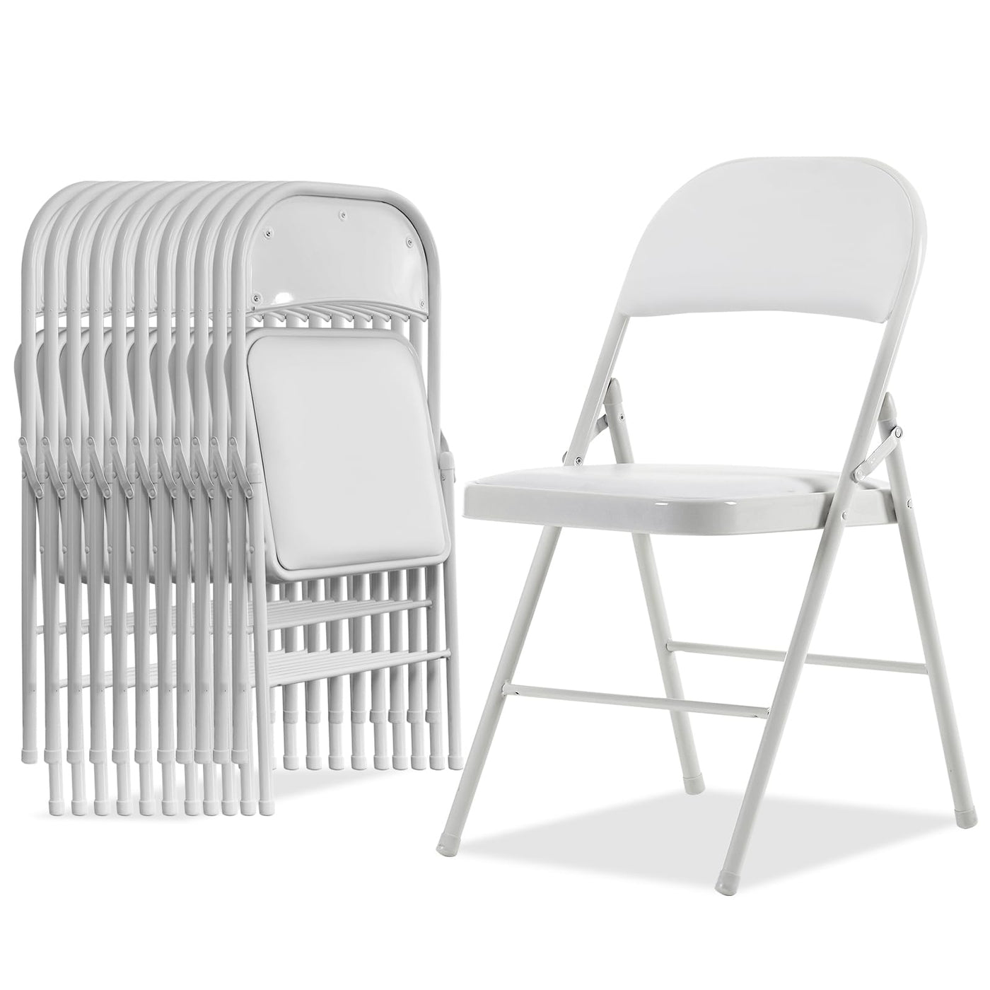 Karl Home 12 Pack White Folding Chairs With Padded Seats For Outdoor & Indoor, Portable Stackable Commercial Seat With Steel Frame For Events Office Wedding Party, 330Lbs Capacity