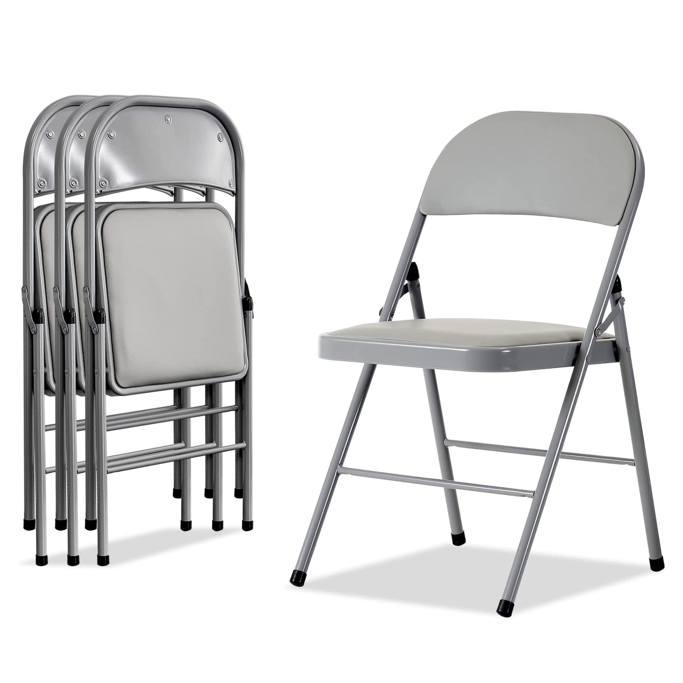 Karl Home 4 Pack Grey Folding Chairs With Padded Seats For Outdoor & Indoor, Portable Stackable Commercial Seat With Steel Frame For Events Office Wedding Party, 330Lbs Capacity
