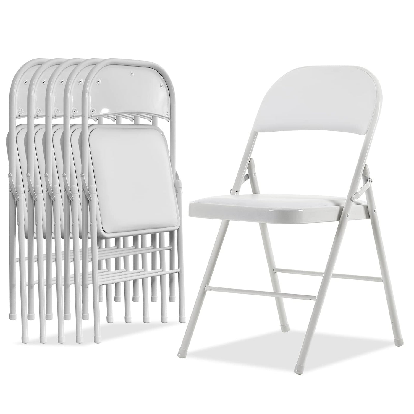 Karl Home 6 Pack White Folding Chairs With Padded Seats For Outdoor & Indoor, Portable Stackable Commercial Seat With Steel Frame For Events Office Wedding Party, 330Lbs Capacity