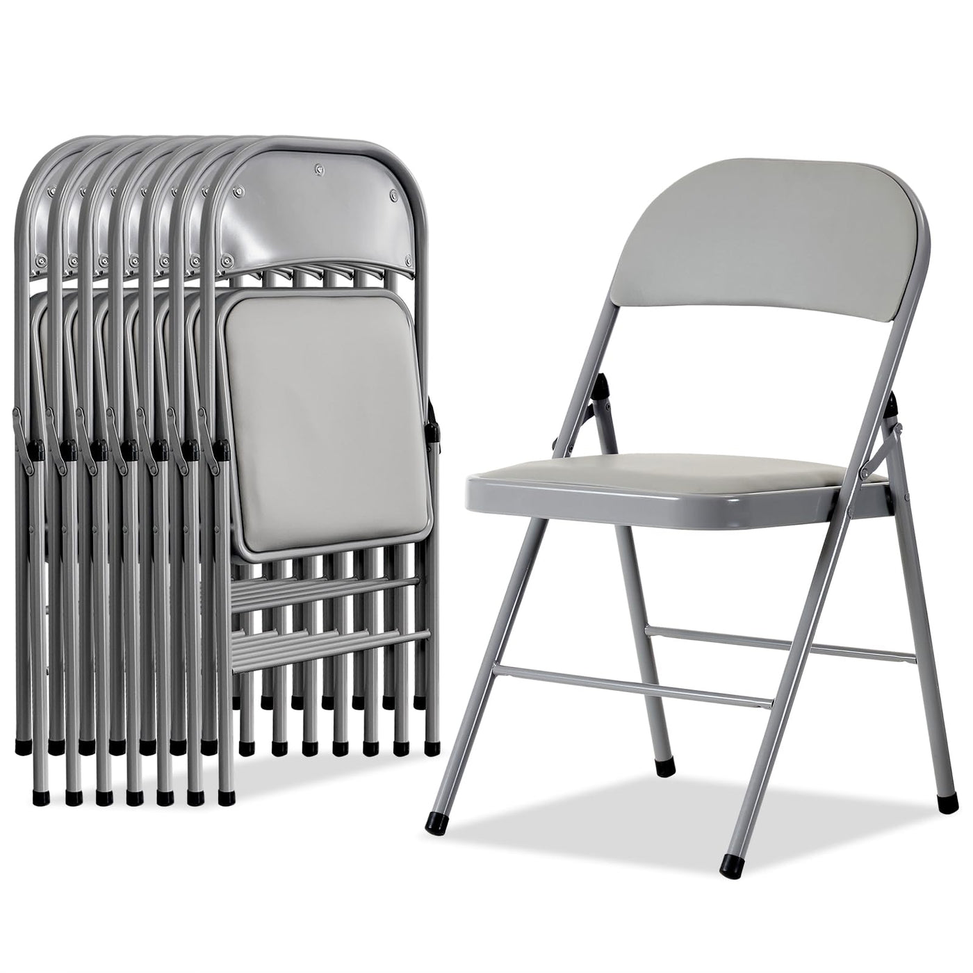Karl Home 8 Pack Grey Folding Chairs With Padded Seats For Outdoor & Indoor, Portable Stackable Commercial Seat With Steel Frame For Events Office Wedding Party, 330Lbs Capacity