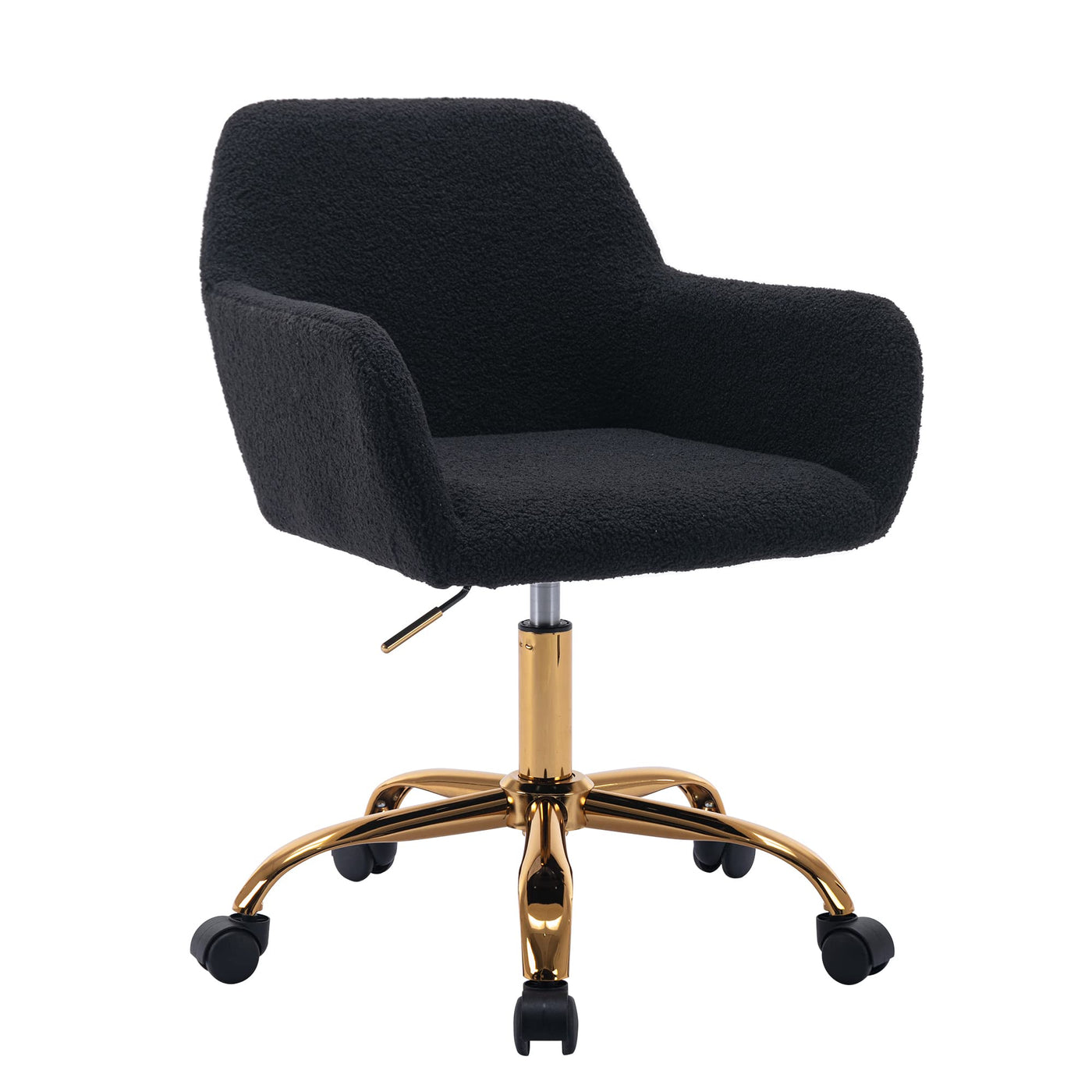 Kcc Faux Fur Office Desk Chair, Comfy Swivel Armchair With Wheels, Upholstered Fuzzy Vanity Chair, Adjustable Seat Height, Black