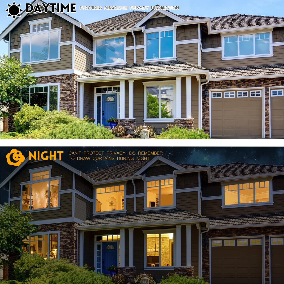 Q: How does the one-way privacy feature work?A: The one-way privacy feature allows you to see outside during the day while preventing outsiders from seeing in, making it ideal for enhancing privacy in homes and offices.