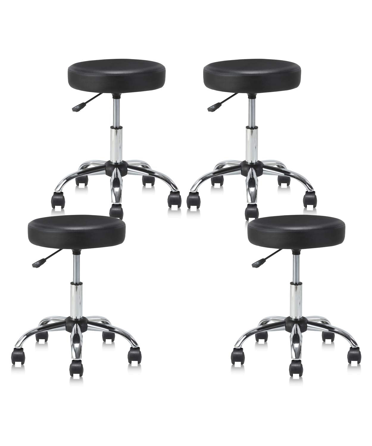 Klasika Set Of 4 Round Rolling Stool Swivel With Wheels Adjustable Height Heavy Duty Wide Seat Drafting Stool Chair For Office S