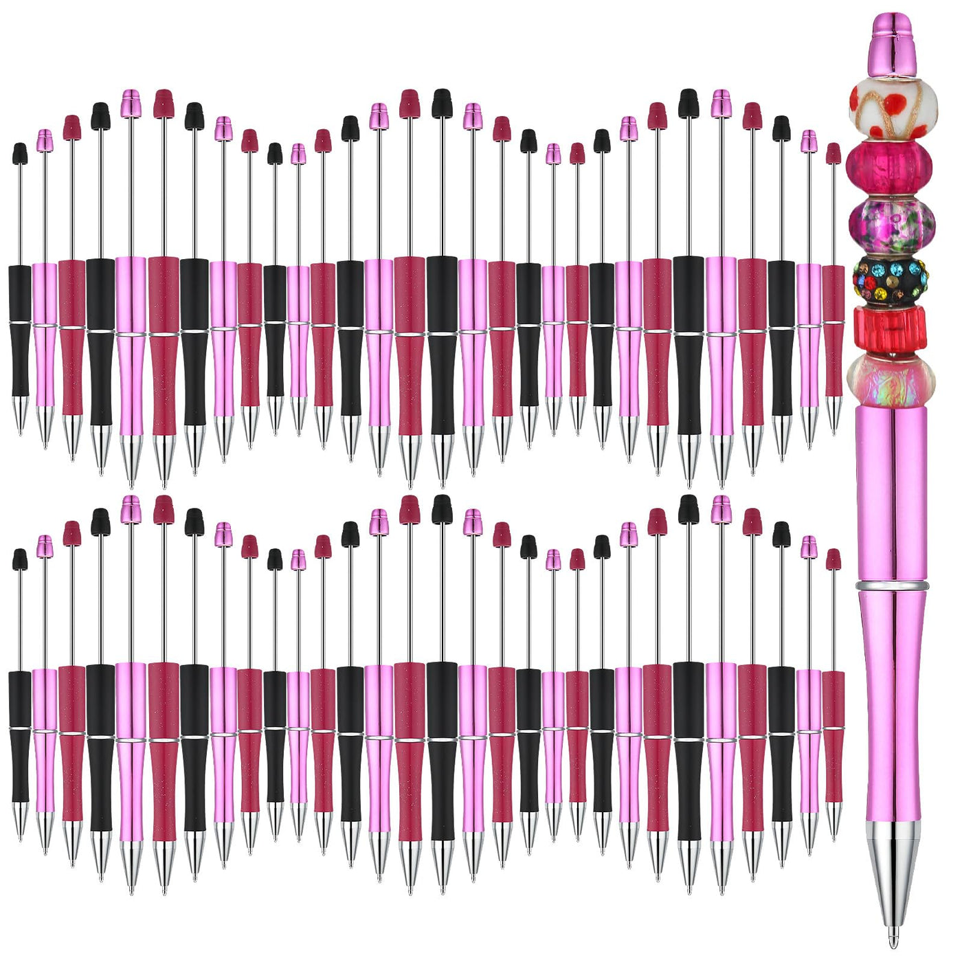 Kosiz 60 Pieces Plastic Beadable Pen Beaded Black Ink Ballpoint Pens For Kids Students Presents Office School Supplies(Black, Pi