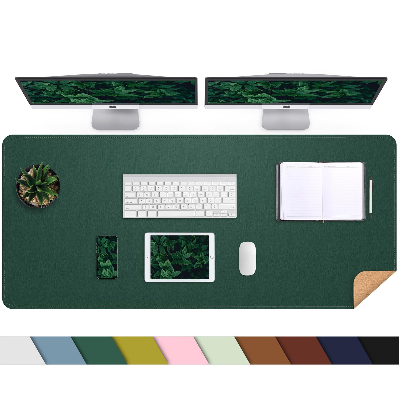 Leather Desk Pad Protector, Large Desk Mat With Natural Cork & Pu Leather,Large Mouse Pad, Office Desk Mat,Waterproof Desk Writi