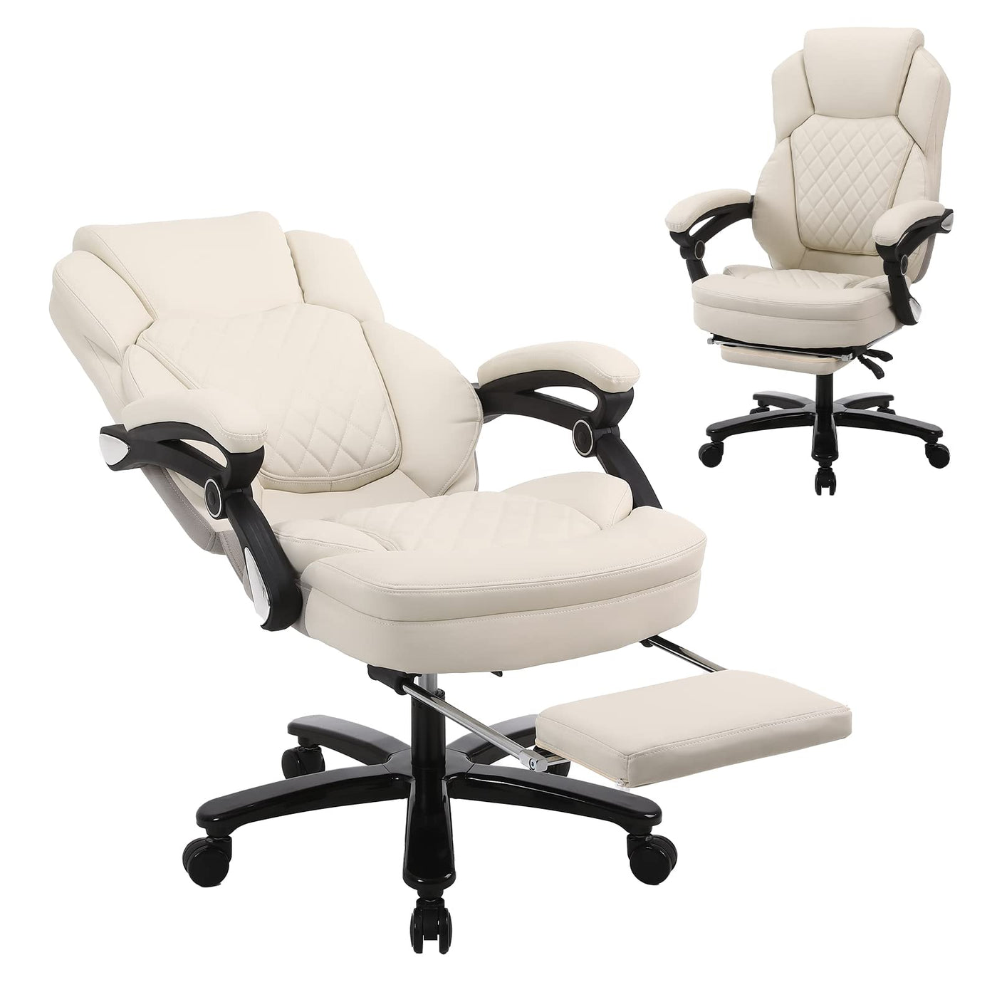 Linting 400Lb Big Tall Reclining Office Desk Chairs With Footrest Pu Leather High Back White Home Recliner Office Chairs With Wheels, Plus Size Managerial Executive Chair
