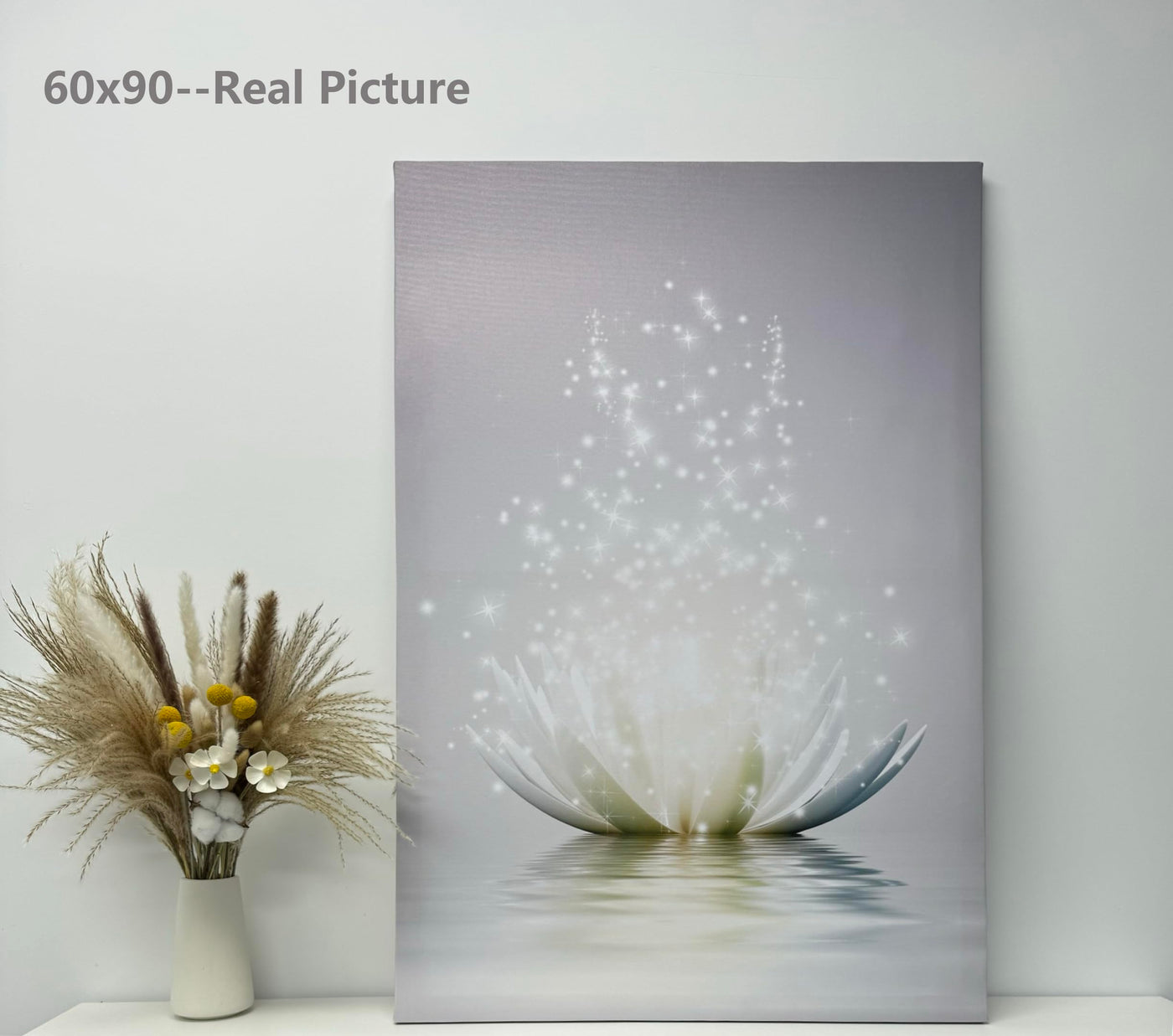 Q: What are the dimensions of the Lotus Floral Canvas Print?A: The Lotus Floral Canvas Print measures 20x30 inches (50x75 cm), making it a perfect size for various wall spaces.