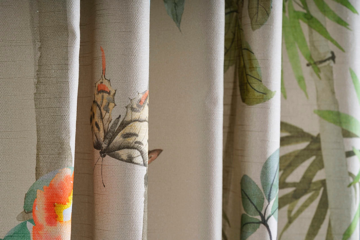 Q: What material are the Maison d'Hermine curtains made of?A: These curtains are made from 100% high-quality breathable cotton, providing a soft and elegant touch to your living space.