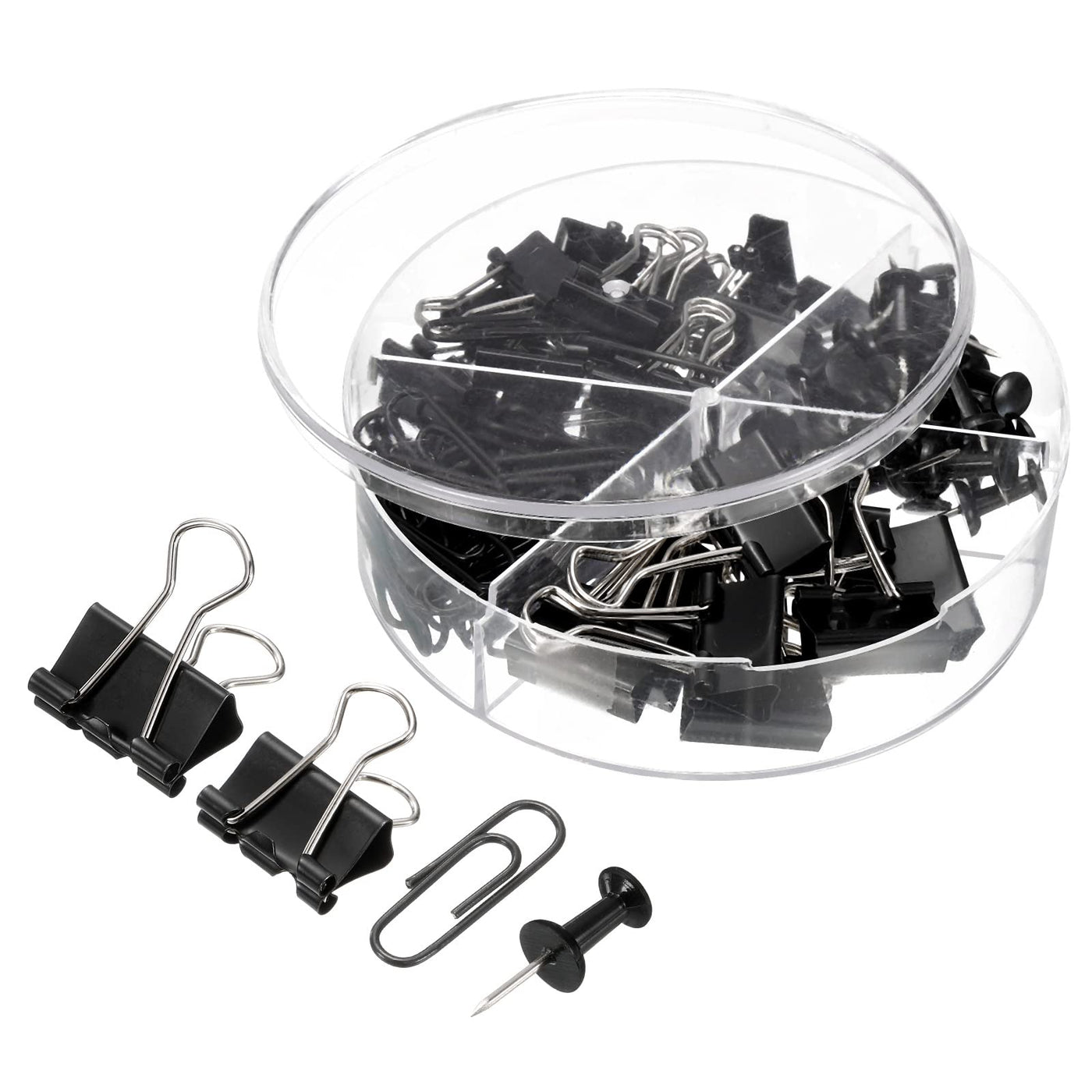 What Is This?The Paper Clips Binder Clips Set Is Used To Keep Your Documents, Examination Paper, Flyer, Photos, Refills, Envelopes, Posters, And Tickets Well Organized, Perfect For Office, And Home Daily Supplies.What Will I Get?There Are Four Different Styles And Sizes Of Binders In The Set, Which Can Meet Your Different Needs At The Same Time.Color: Blackmaterial: Metal, Plasticmedium Binder Clips Size: 35X19Mm/1.38X0.75 Inch(L*W)Small Binder Clips Length: 25X15Mm/0.98X0.59(L*W)Paper Clips Length:28 Mm / 1.1 Inchpush Pins Length: 22 Mm / 0.9 Inchpacking List: 20 X Medium Binder Clips, 10 X Small Binder Clips, 45X Paper Clips, 25 X Push Pinsare There Any Advantages Of The Product?The Clips Are Made Of Metal And Plastic And Have A Compact Shape That Looks Neat And Tidy, Rust Resistance And Durability Have High Smoothness, And Will Not Chip Or Fall Off.Pushpins Are Often Used For Information Display, Fixing Maps, Photos, And Other Information On Bulletin Boards And Cork Boards.How To Use It?Select The Appropriate Clip Style And Size According To Your Needs, Integrate The Materials To Be Bound Together, And Bind With Binder Clips, Paper Clips, Or Pushpins.What Should I Notice?The Metal Is Very Sharp, Be Careful Not To Get Scratched When Using It.The Clip Is Small, Please Keep It From Children To Prevent Accidental Ingestion.