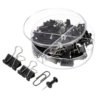Meccanixity Paper Clips Binder Clips Set, 100 Pcs Office Clips With Binder Clips, Paper Clips, Push Pins Suitable For Desktop Of