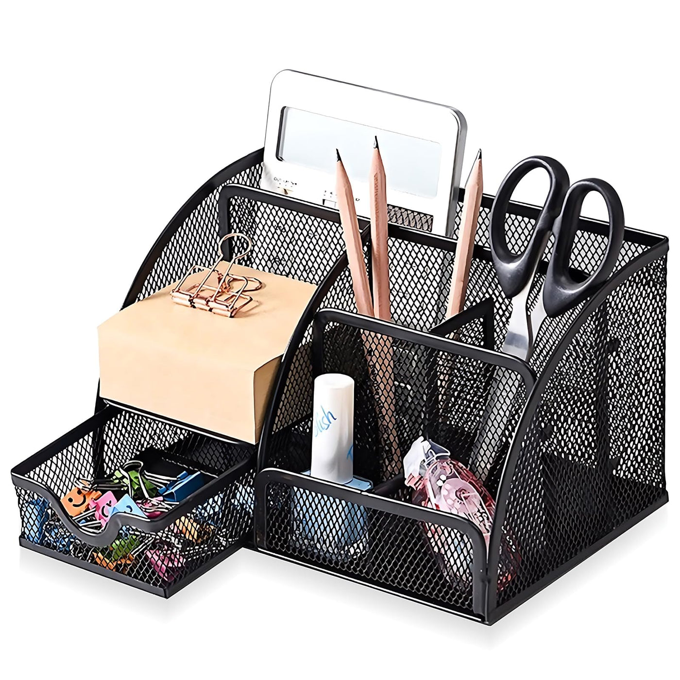 Mesh Desk Organizer, Desktop Organizer With Drawer, Office Supplies Multi-Functional Caddy, Metal Stationary Black Desk Caddy, W