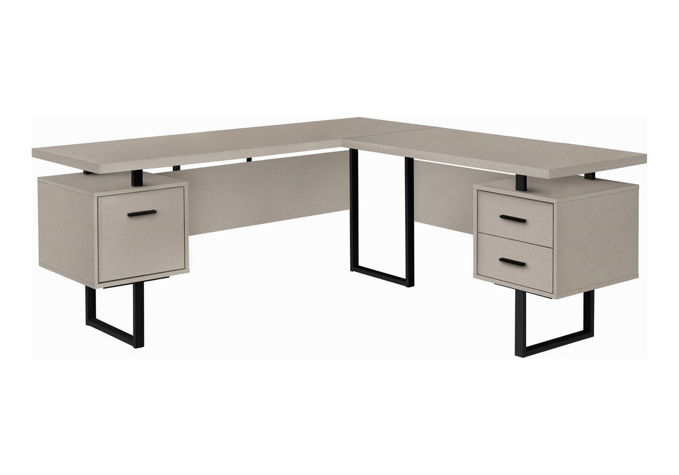 Monarch Specialties 7614 Computer Desk, Home Office, Corner, Left, Right Set-Up, Storage Drawers, 70" Shape, Work, Laptop, Metal, Laminate, Beige, Desk-70 L Modern Taupe Black R, 71" L X 71" W X 30" H