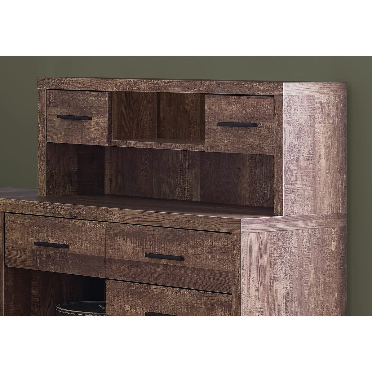 Outstanding Functionality Comes Out On Top With This Corner Computer Desk In A Wood-Look Finish. It Features A Storage Unit With Hutch And Offers Numerous Storage Options: 8 Storage Drawers In Various Sizes With Finished Interiors And Handles, 3 Cubbies, Plus The Top Of The Hutch Can Be Used As A Shelf. For Maximum Convenience, This Large Desk Has A Reversible Configuration, So You Can Set Up The Storage Unit With Hutch On The Left Or Right According To Your Preference. This L-Shaped Computer Desk Saves Space When Used In A Corner But Is Finished On All Sides For A Polished Look Wherever It Is Placed In A Home Office.