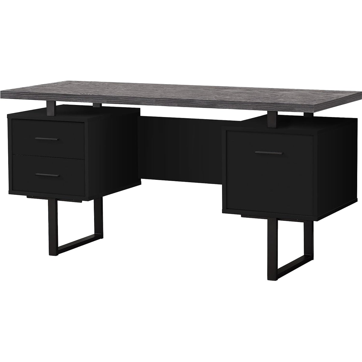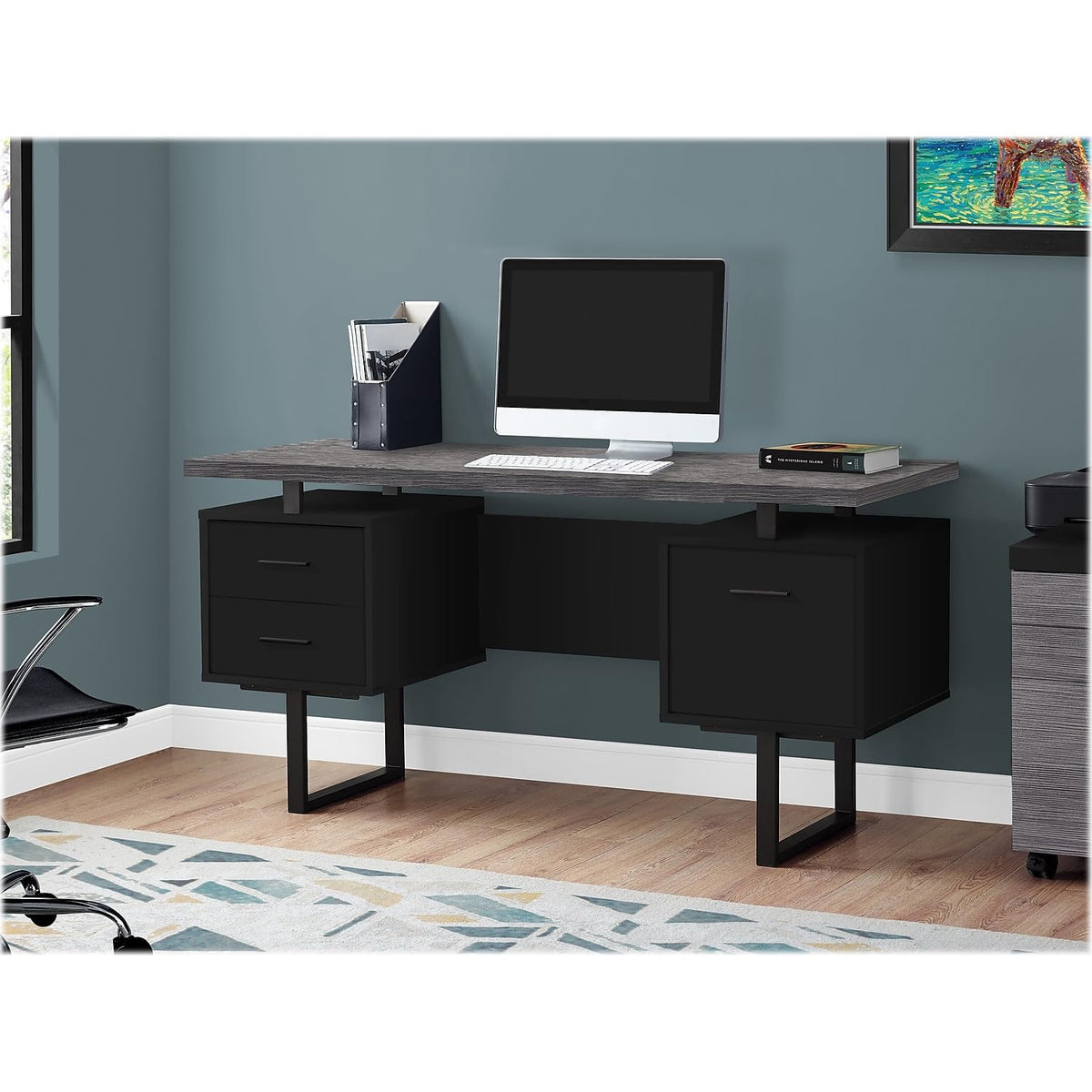 Monarch Specialties Computer Desk with Drawers - Contemporary Style - Home & Office Computer Desk with Metal Legs - 60'L (Black - Grey Top)