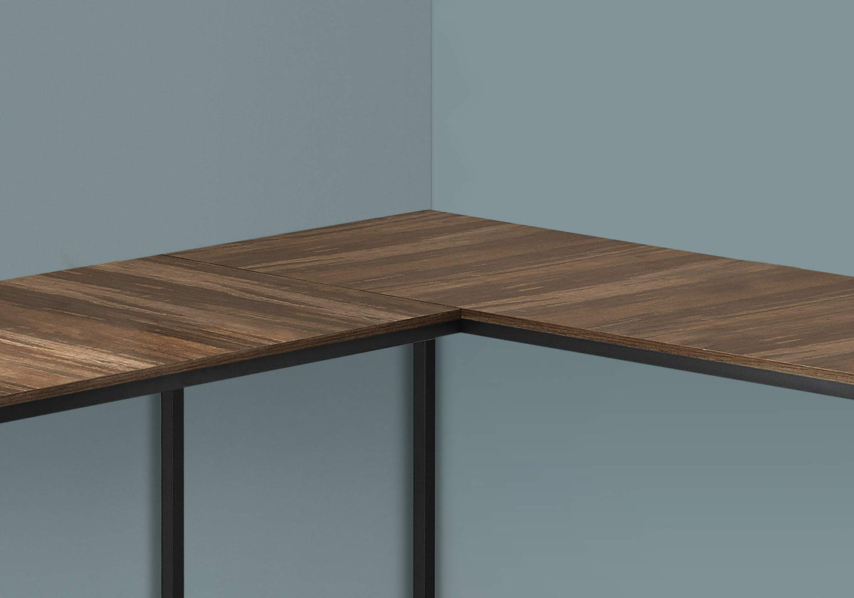 You Won'T Feel Boxed Into A Corner With This Spacious L-Shaped Corner Desk That Offers A Large Work Surface In A Compact Design. Set Up Your Computer Monitor Or Laptop On The Left Or Right Side Of The Desktop Based On Your Preference, Then Arrange The Other Items You Need To Maximize Your Productivity. There'S More Than Enough Space For A Desk Lamp, File Organizer, And Pencil Holder, As Well As For Decorative Items, Like Picture Frames Or Special Keepsakes. Moving Around To Reach Your Supplies Is Easy Thanks To The Open Space Underneath The Desk That Offers Generous Leg Room. Leave This Area Empty Or Use It To Place A Computer Tower Or File Boxes With Important Papers. With Its L Shape, This Computer Desk Is Ideally Placed In The Corner Of A Room. If You Prefer To Position It Elsewhere, It Is Finished On All Sides For A Polished Look No Matter Where It Is Placed In Your Home Office. Desktop Panels In A Brown Reclaimed Wood-Look Laminate And A Metal Base In A Contrasting Black Finish Give This Corner Desk A Sleek Style That Will Bring A Touch Of Modern Simplicity To Any Room.
