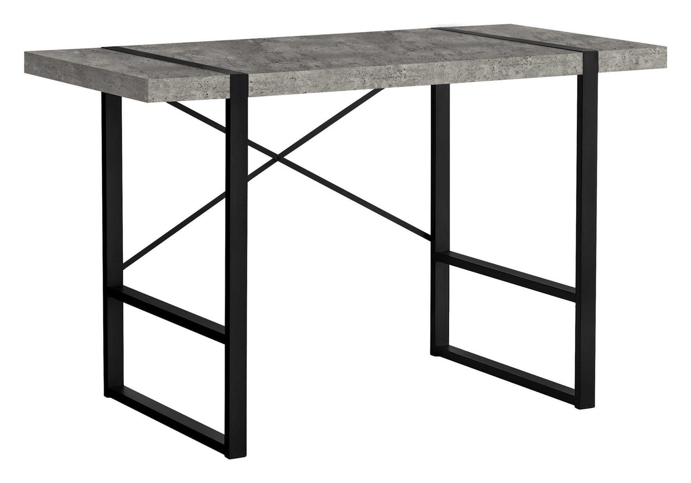This Stylish Industrial-Inspired Computer Desk Could Easily Pass For An Accent Table. It Features A Spacious, Thick-Panel Desktop Finished In A Grey Concrete-Look Laminate And Sturdy Metal Legs In A Contrasting Black Finish. The Metallic Components Are Put On Full Display With Rectangular Legs Integrated Into The Desktop And An Exposed Support Bar In An Attractive X Shape On The Back Of The Desk. If You Use A Living Room Or Bedroom As A Home Office And Are Looking For A Streamlined Alternative To Traditional Desks, This Laptop Or Writing Table Gets The Job Done.Industrial-Inspired Computer Desk With A Thick-Panel Desktop In A Grey Concrete-Look Finishrobust Metal Legs In A Black Finish Are Incorporated Into The Desktop For An Interesting Visual Effectx-Shaped Metal Bar On The Back Of The Desk Provides Support And Adds A Decorative Touchfinished On All Sides For Flexible Placement Anywhere In A Home Office. Assembly Required: Illustrated Instructions And All Hardware Are Provided For Convenience (Additional Tools May Be Needed).