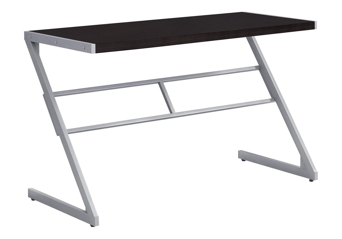 This Sleek Compact Computer Desk In A Simple Contemporary Design Adds Style With Functionality To Your Workspace. The Smooth And Spacious Cappuccino Laminated Surface Made From Quality Mdf Material Provides Plenty Of Room For A Laptop, Lamp, And Other Office Essentials. The Sleek And Sturdy Z Shaped Silver Metal Base Gives That Modern Look. This Desk Easily Compliments A Student'S Room Or Any Place You Have Carved Out As Your Office And Creative Space. Quick To Assemble, You'Ll Have Your Work Area Set Up In No Time At All!