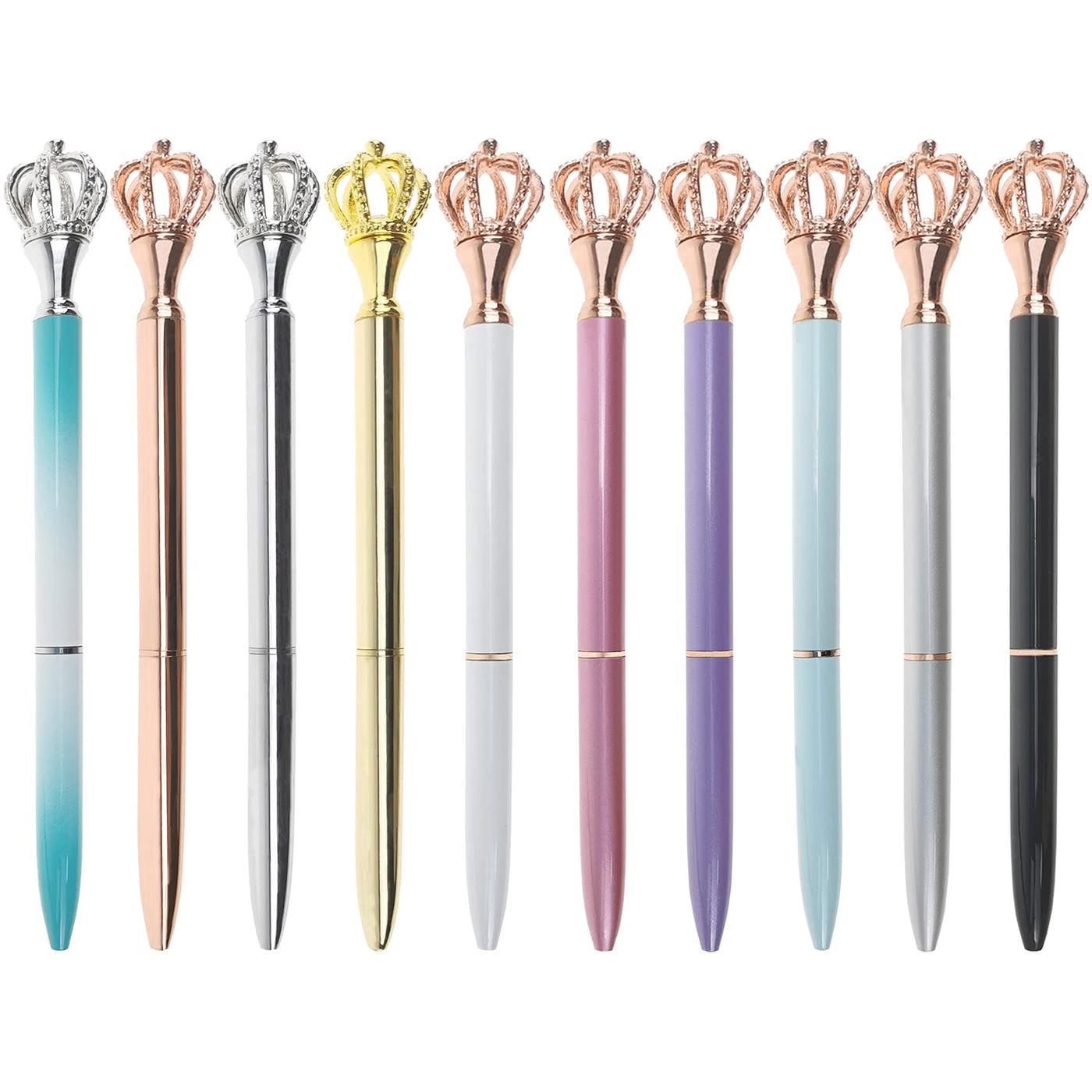 Specifications:Size:5.5 In X 0.6 Inmaterial:Metalcolor: White Blue,&Nbsp; Rose Gold, Silver, Gold, White, Light Purple, Candy Purple, Candy Blue, Painted Silver, Blackink Color: Blackweight: 7.0 Ozpackage Include:10X&Nbsp;Ballpoint Pens With&Nbsp;Crown Top