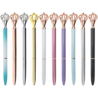 Oddmoal 10 Pack Crown Top Pens, Bling Crystal Fancy Metal Ballpoint Pens With 1.0 Mm Black Ink, Signature Writing Pen For Office