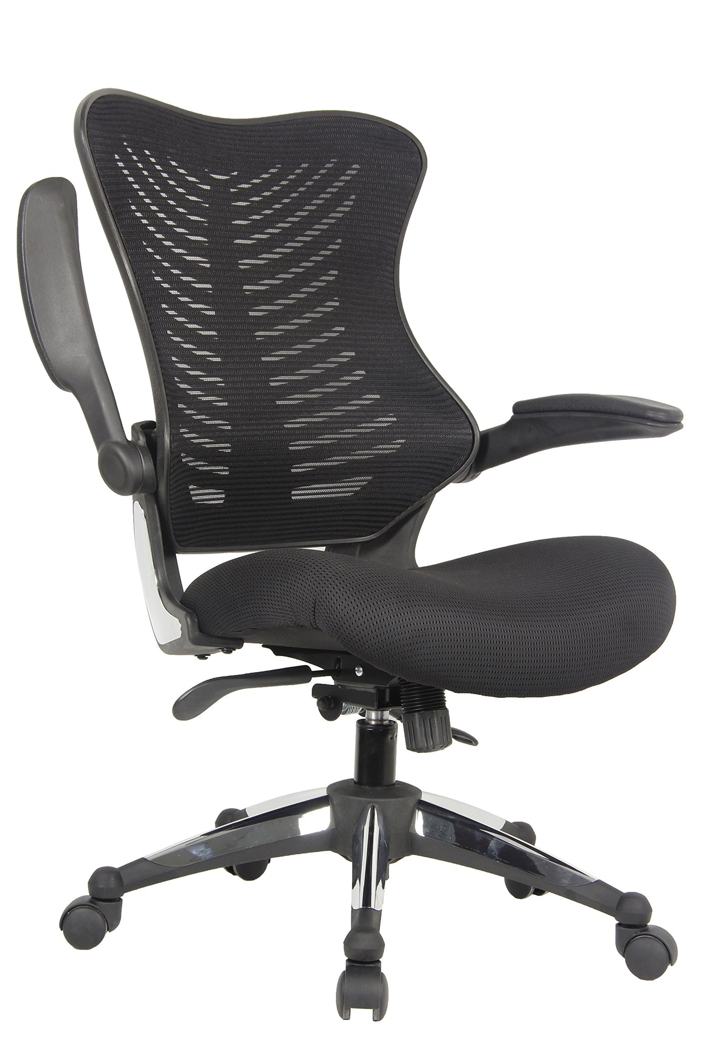 Officefactor Ergonomic Breathable Mesh Chair With Flip-Up Armrests, Lumbar Support Executive Rolling Swivel Task Computer Office