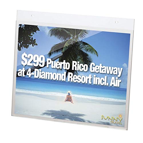 The Horizontal Wall Mount Sign Holder For 8-1/2 X 11 Inches Signs Or Documents. Dual Holes Makes Wall Mounting Easy. Literature Slides In Easily From The Top. Made Of Clear Plastic.