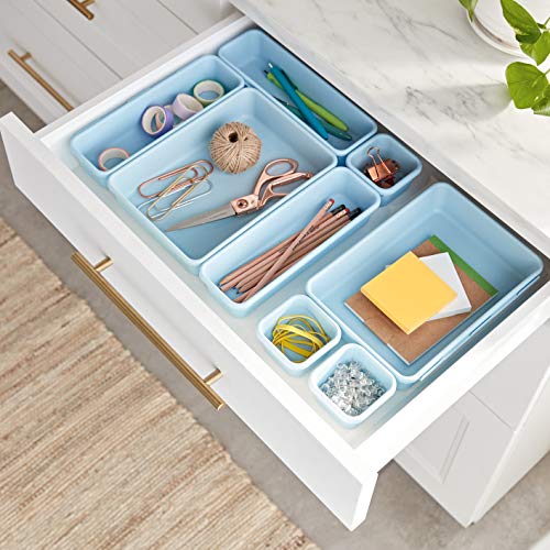 Home Organization Has Never Been Easier! Oggis 8 Pack Interlocking Drawer Organizers & Storage Bins. Customizable, Versatile, And Stackable Containers For Organizing. Stop Losing Small Items And Take A Few Minutes To Tidy Up Your Junk Drawer. The 3 Different Sized Modular Interlocking Bins Give You The Ability To Create Multiple Configurations. The Bpa Free Plastic Is Sturdy And Easy To Clean. Simply Wipe Out With A Damp Towel To Clean. Customize The Style To Fit Any Drawer And Solve Your Organization And Storage Needs In Every Room In Your Home. Use As A Kitchen Utensil Drawer Organizer, Office Supplies Organizer, Or In The Bathroom As A Vanity Tray. The Multiple Colors And Simple Design Make These Storage Containers Something You Can Keep On The Counter And Not Always Leave Hidden In The Drawers! There Are Enough Colors To Have A Set In Every Room! Color Options Include White, Gray, Blush, Brick, Ice Blue, And Blue. Each 8 Pack Includes (2) 9.3? L X 6.3? W X 1.9? H, (3) 9.3? L X 3.1? W X1.9? H, (3) 3? L X 3.1? W X 1.9? H.